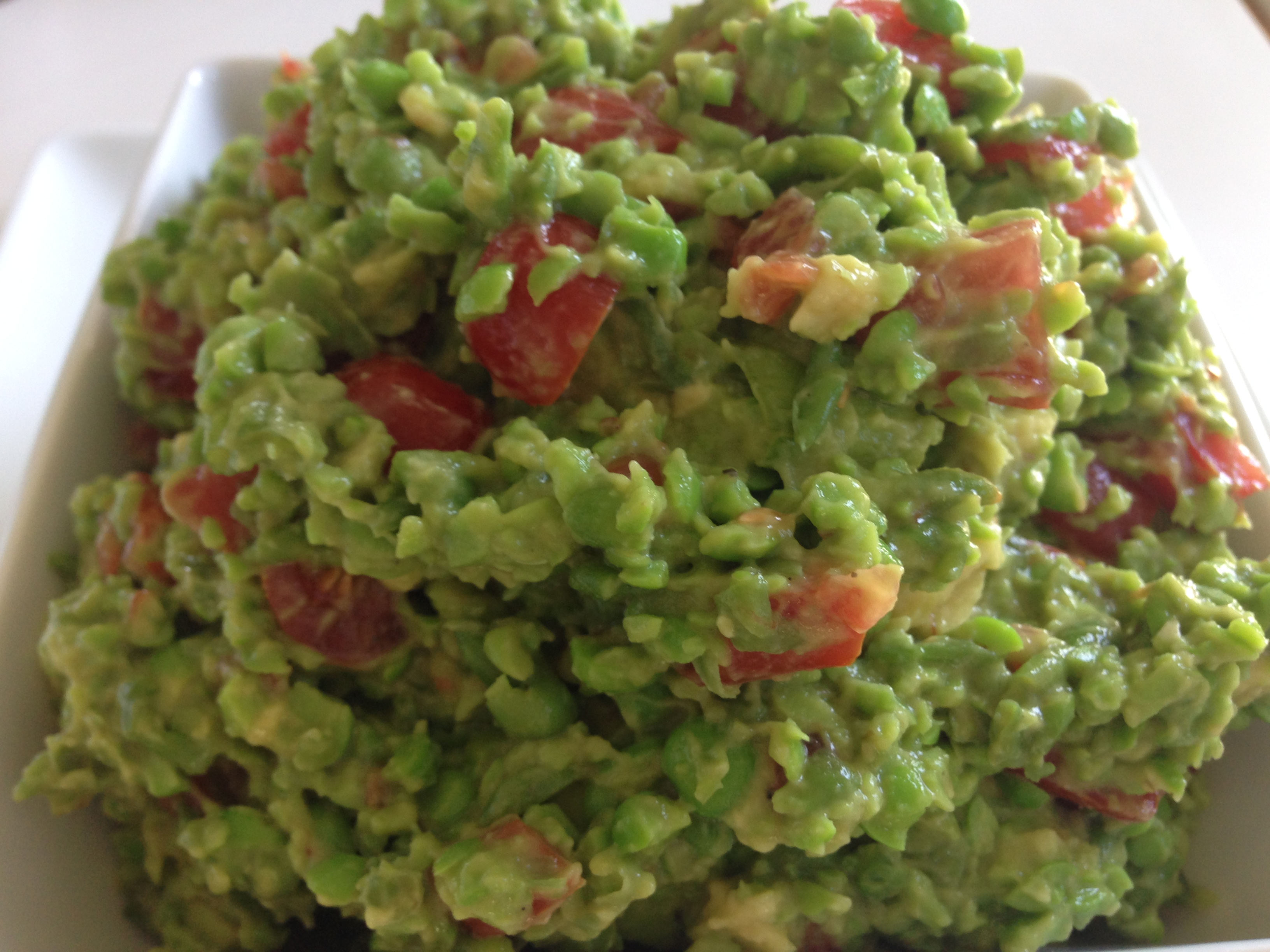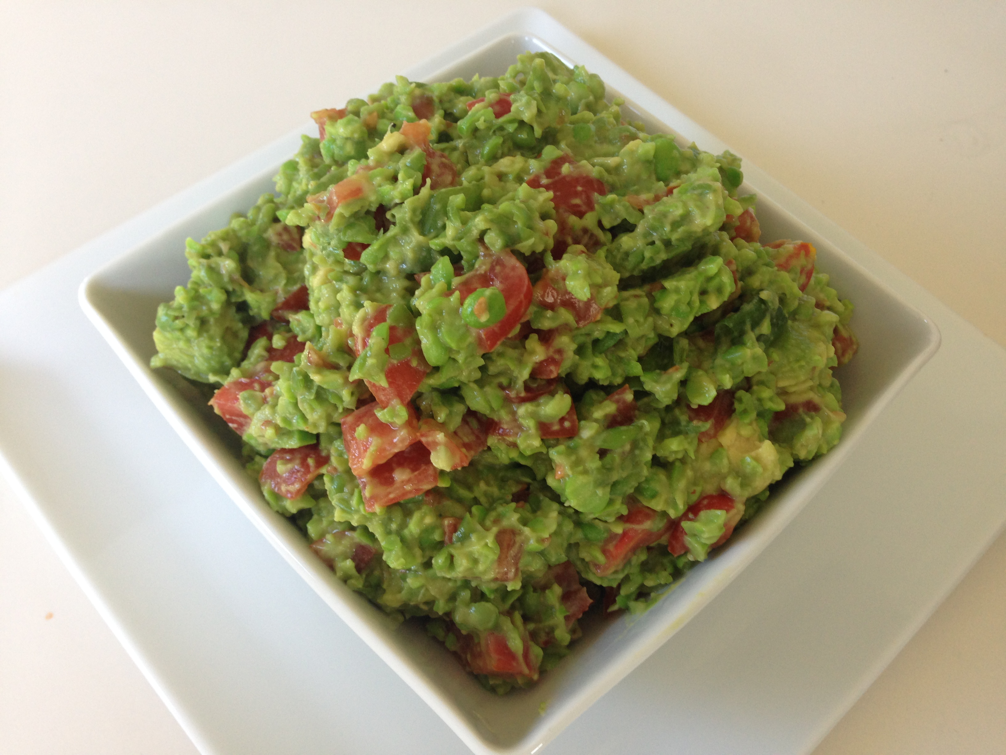 2 cups of raw green peas have about 240 calories, 15 grams of protein, and 15 grams of dietary fiber with no fat and virtually no sodium. High in vitamin A and C along with iron and potassium, fresh green peas are a perfect complement with an avocado which has about 230 calories, 3 grams of protein, 10 grams of dietary fiber, and 21 grams of fat along with Vitamin C, B-6, and magnesium. One’s a fruit (avocado) high in fat (the good kind) and one’s a vegetable (peas) high in protein. Both are high in fiber, vitamins and minerals – a strategic partnership if there ever was one.
