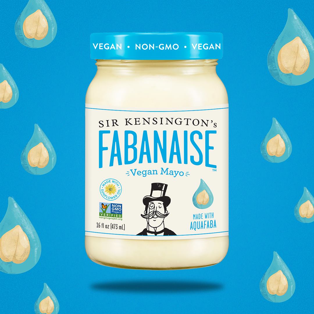 *If you’ve ever drained chickpeas (garbanzo beans), then you already know what aquafaba is. Chickpeas are cooked in water. When strained, the liquid left behind is aquafaba which most people pour down the drain. The good people at Sir Kensington’s realized that aquafaba had excellent egg-like qualities and partnered with a hummus company to save the liquid, have it transferred to Sir Kensington’s manufacturing facilities where it is used to make Fabanaise.