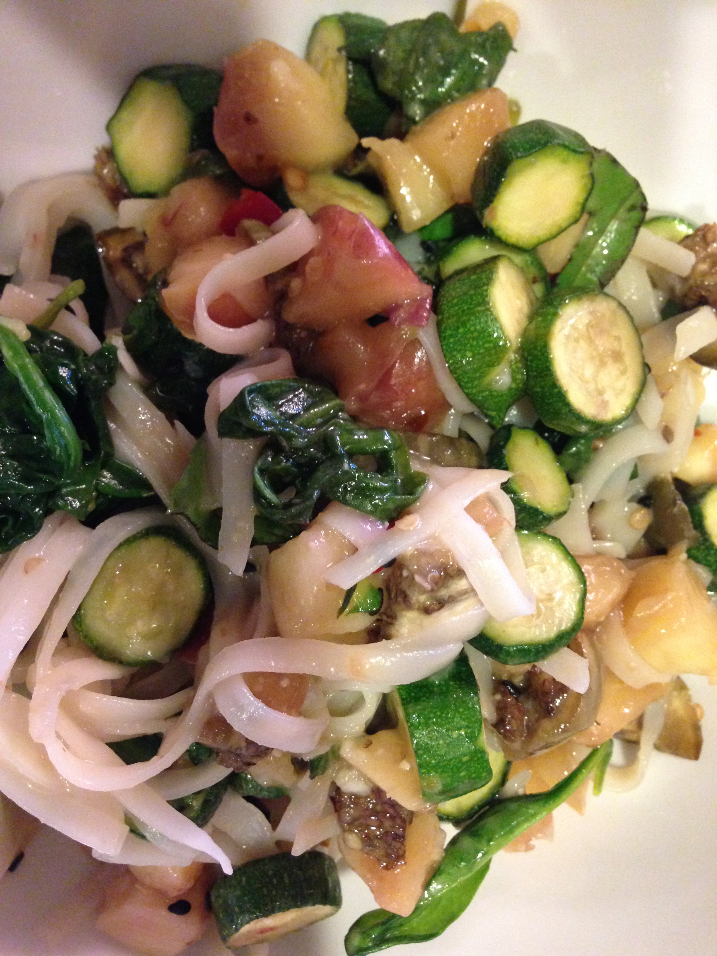 Miso Glazed Veggies with Rice Noodles (Serves 2-3)