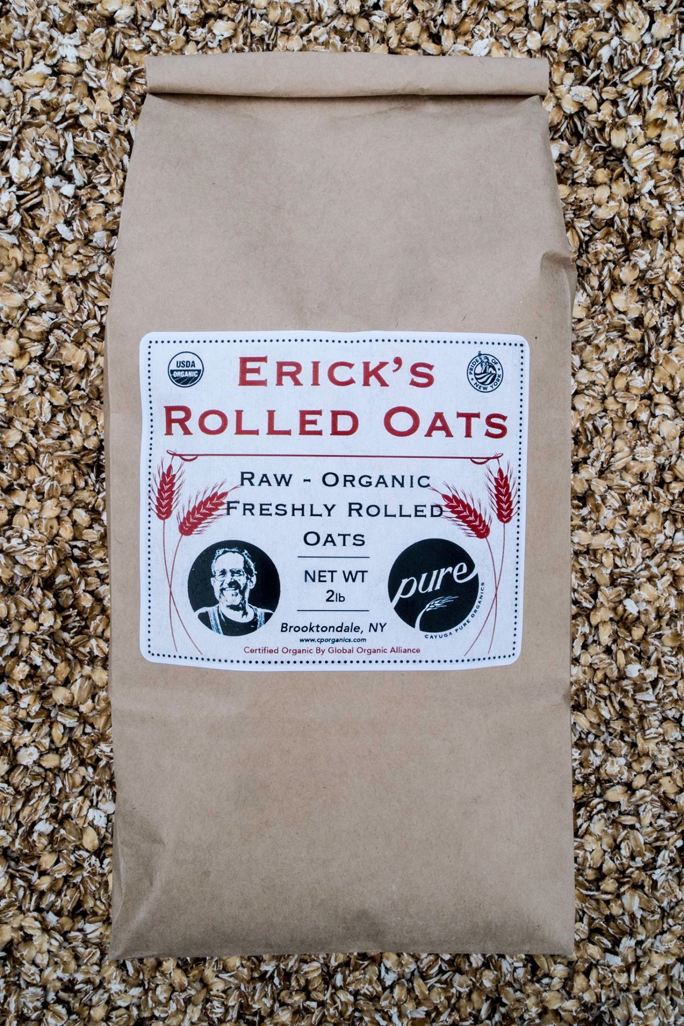 Cayuga Pure Organics grows organic, non-GMO oats and collaborates with other local organic farmers to bring you Erick’s Rolled Oats which are stored, cleaned, rolled, and packaged on Cayuga’s farm in upstate New York. So, if you want pure, organic oats grown by farmers who care about what they grow, eat, and the environment (no steaming saves tons of CO2 emissions over time), then Erick’s Rolled Oats should be your choice.
