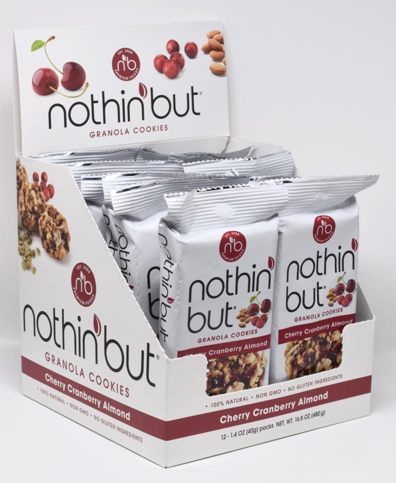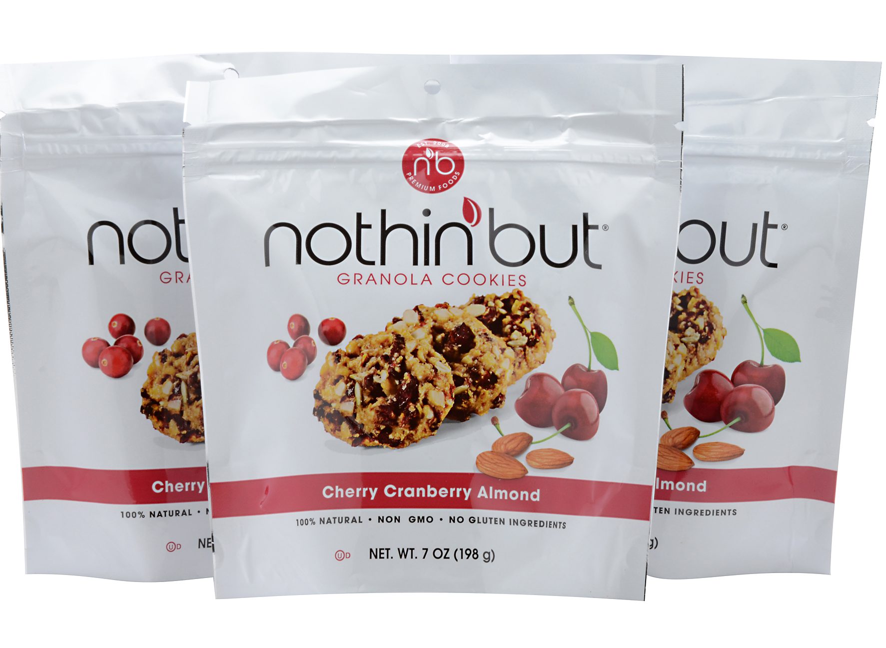 Nothin’ But® Granola Cookies are made by Nothin’ But Foods of Westport, Connecticut – a company established by two entrepreneurs who know that “simple ingredients combined in the right way can achieve tasty greatness.” Tired of the junk food that was being passed off as nutritious and good, Jerri Graham and Steve Laitman created granola cookies in two flavors: Cherry Cranberry Almond and Chocolate Coconut Almond.