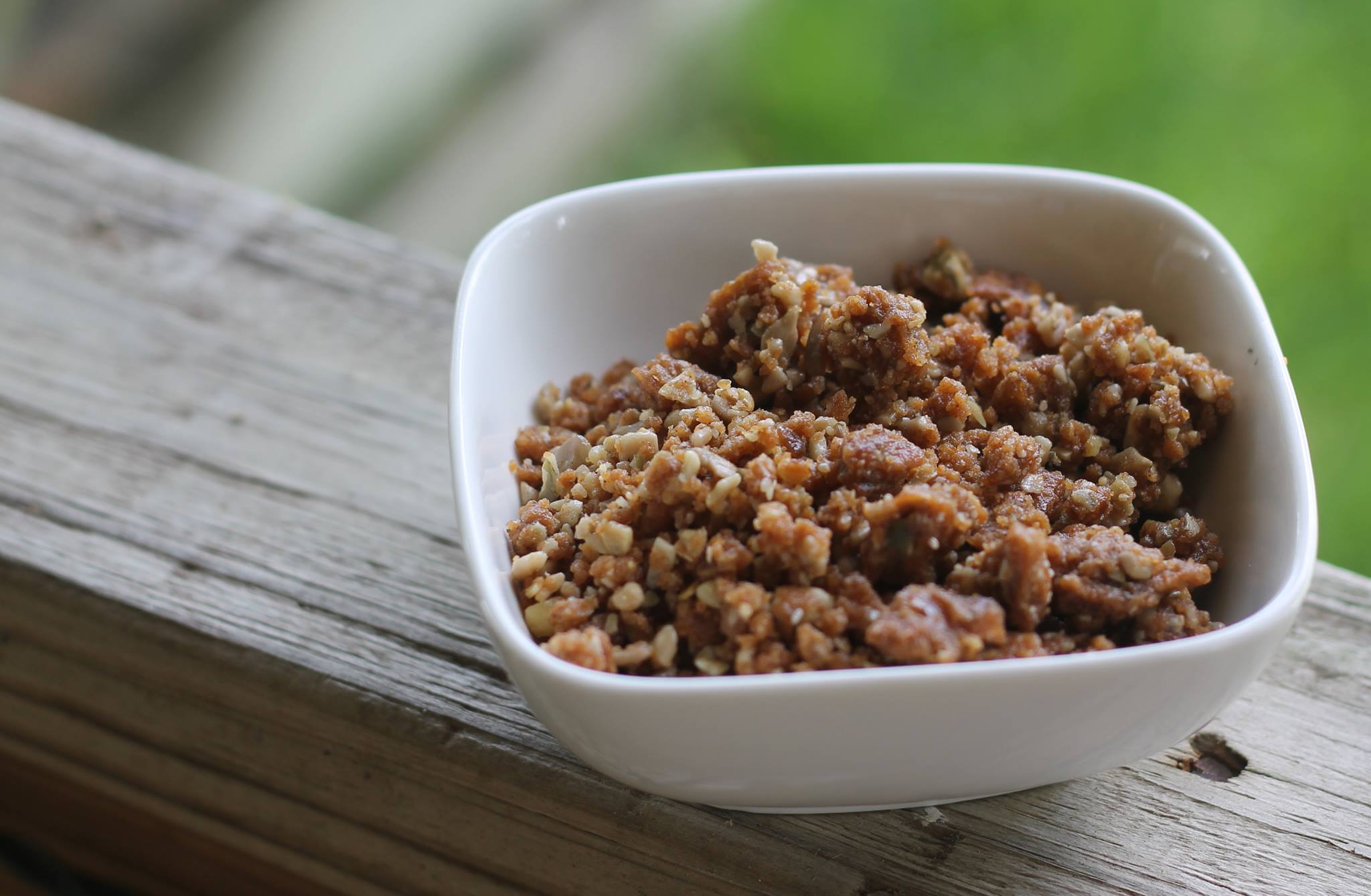 Apple Cinnamon: 10 ingredients – organic dates, apples, walnuts, sunflower seeds, pumpkin seeds, dry roasted cashews, pecans, cinnamon, nutmeg, and vanilla bean – are used to make this applicious granola. There’s a reason apples and cinnamon go together – and it’s not just for pie!