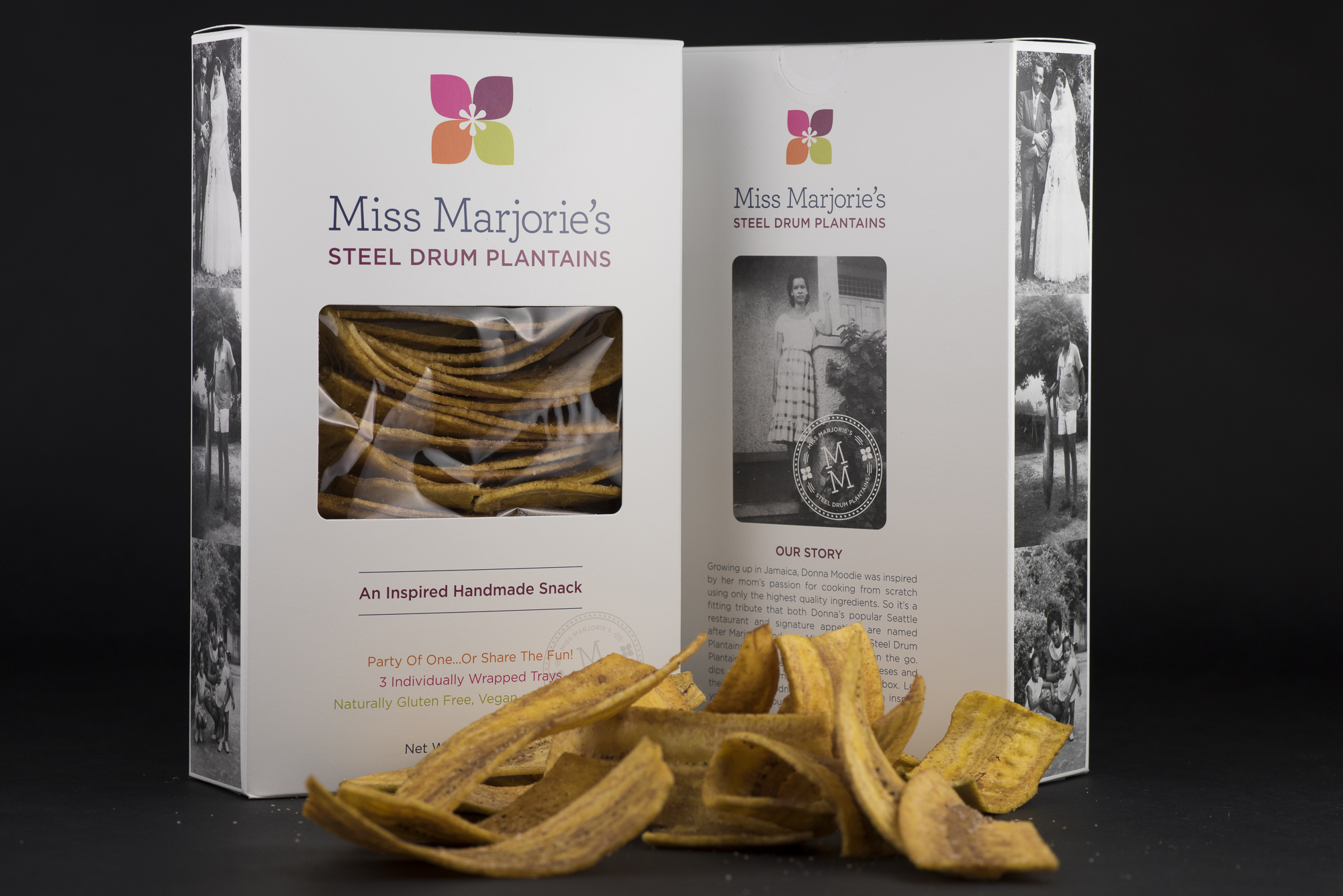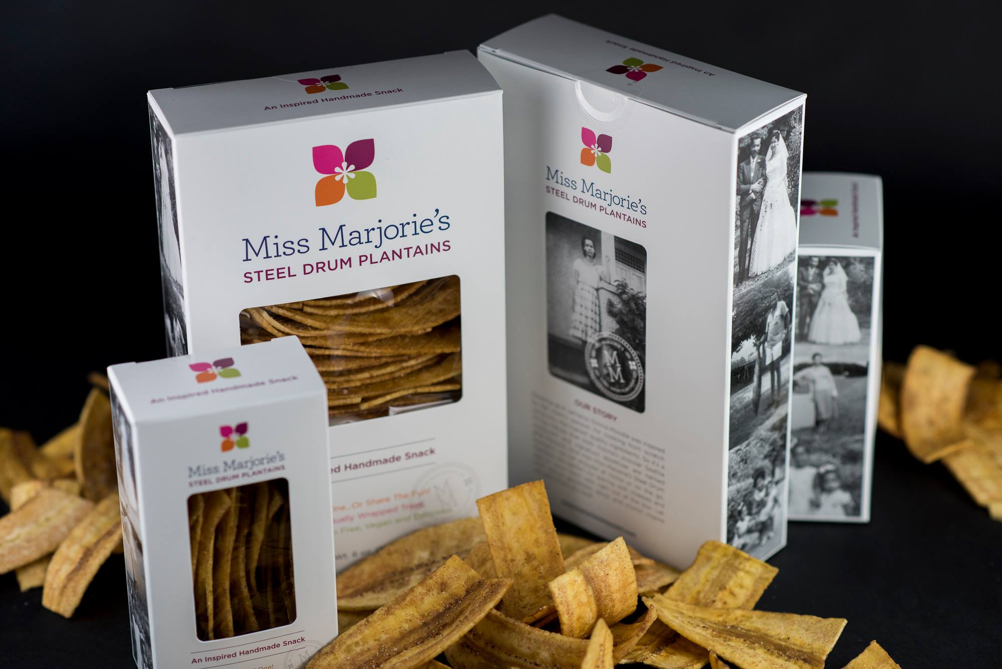 Miss Marjorie’s Steel Drum Plantains are made of all non-GMO ingredients: plantains, canola oil, salt, and spices including cayenne. Naturally gluten-free, vegan, and delicious, Miss Marjorie’s Steel Drum Plantains are the perfectly spiced savory chip: crunchy with a hint of spiciness and slightly sweet. Pair with guacamole, salsa, soup, or enjoy right out of the beautifully packaged box.