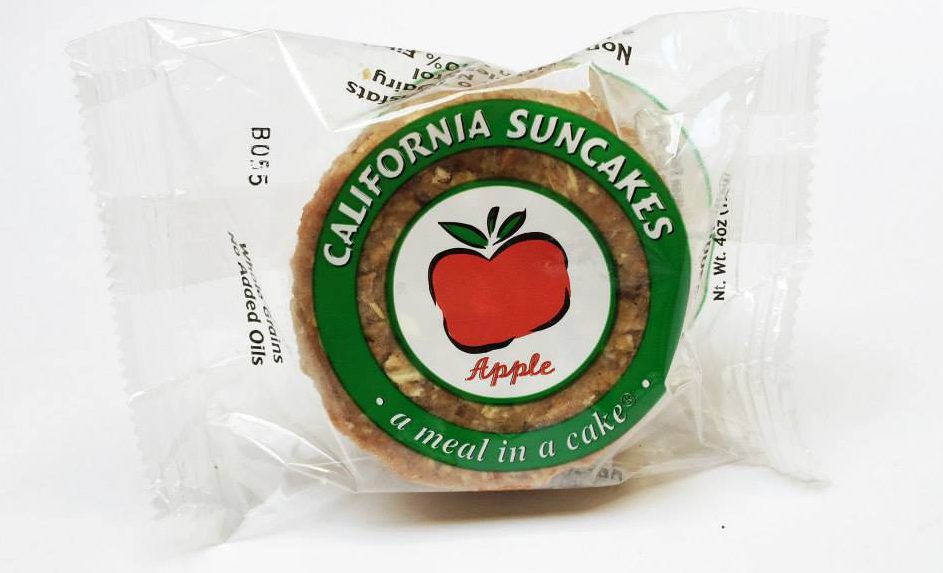 The cakes are made by the Healthy Baking Company (0f Emeryville, California) with non-GMO ingredients, are vegan, have virtually no sodium, are nut-free and have no refined sugars. Shaped like a hockey puck, California Suncakes have a shelf life of about 30 days so store them in the freezer and take them out as needed.