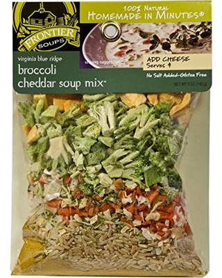 - 5-ounce packet Frontier Soups Broccoli Cheddar Soup Mix*