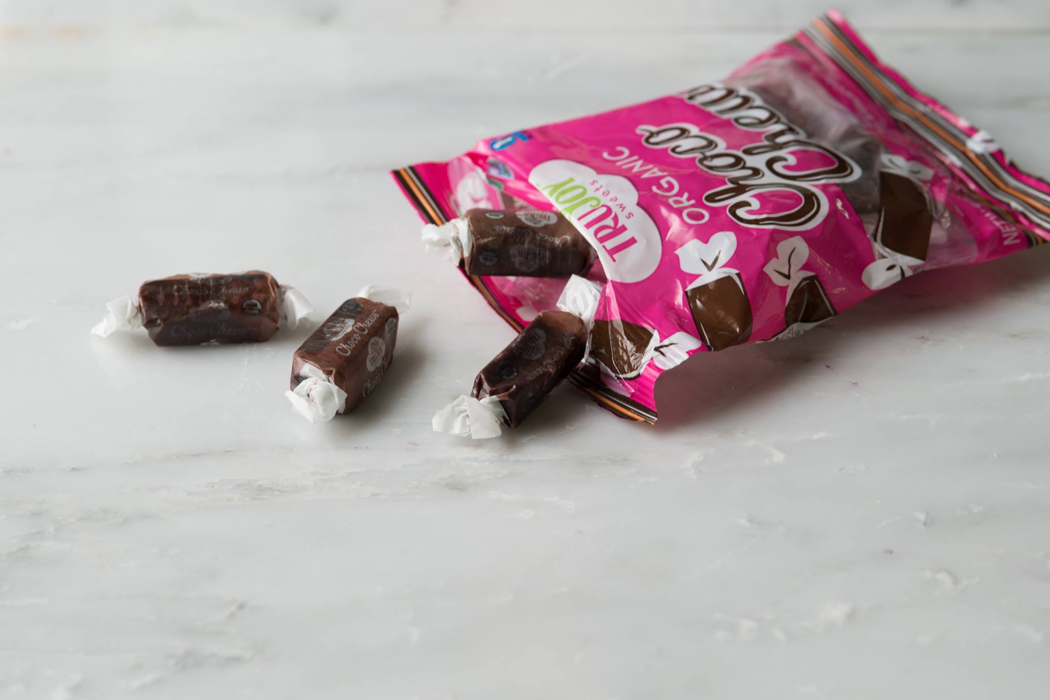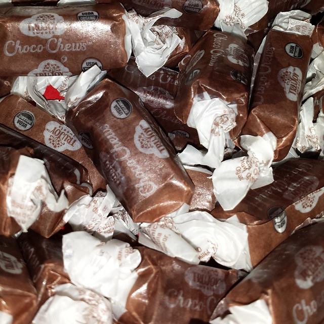 The problem with Tootsie Rolls are the ingredients: sugar, corn syrup, partially hydrogenated soybean oil, condensed skim milk, cocoa, whey, soy lecithin, artificial and natural flavors. A better choice is the organic Choco Chews by TruJoy Sweets which taste very similar to a Tootsie Roll, only better. Made with non-GMO ingredients: organic dried cane syrup, organic tapioca syrup, organic palm oil, organic cocoa powder, organic vanilla flavor, organic chocolate liquor, and organic rice extract, Choco Chews have a softer, chewier texture and a richer, chocolate flavor.
