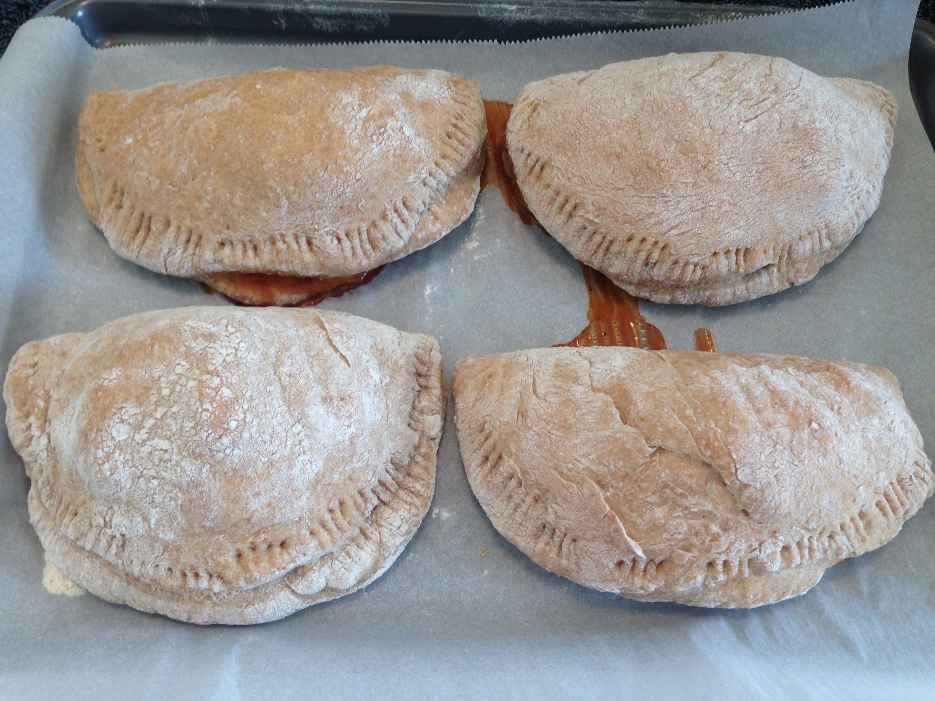 There are two dough options: either make your own or use store-bought. Both will work. I make my own dough in a bread maker that calls for whole grain spelt flour mixed with all-purpose unbleached flour because the blend makes a slightly lighter bread than a dough made with 100% whole grain flour. The recipe below makes enough dough to make 5 large Whole Grain Veggie Pockets, which are best served about 10-15 minutes after they come out of the oven. You also have the option to make pizza dough with a mixer and knead the dough yourself or buy store-bought pizza dough.