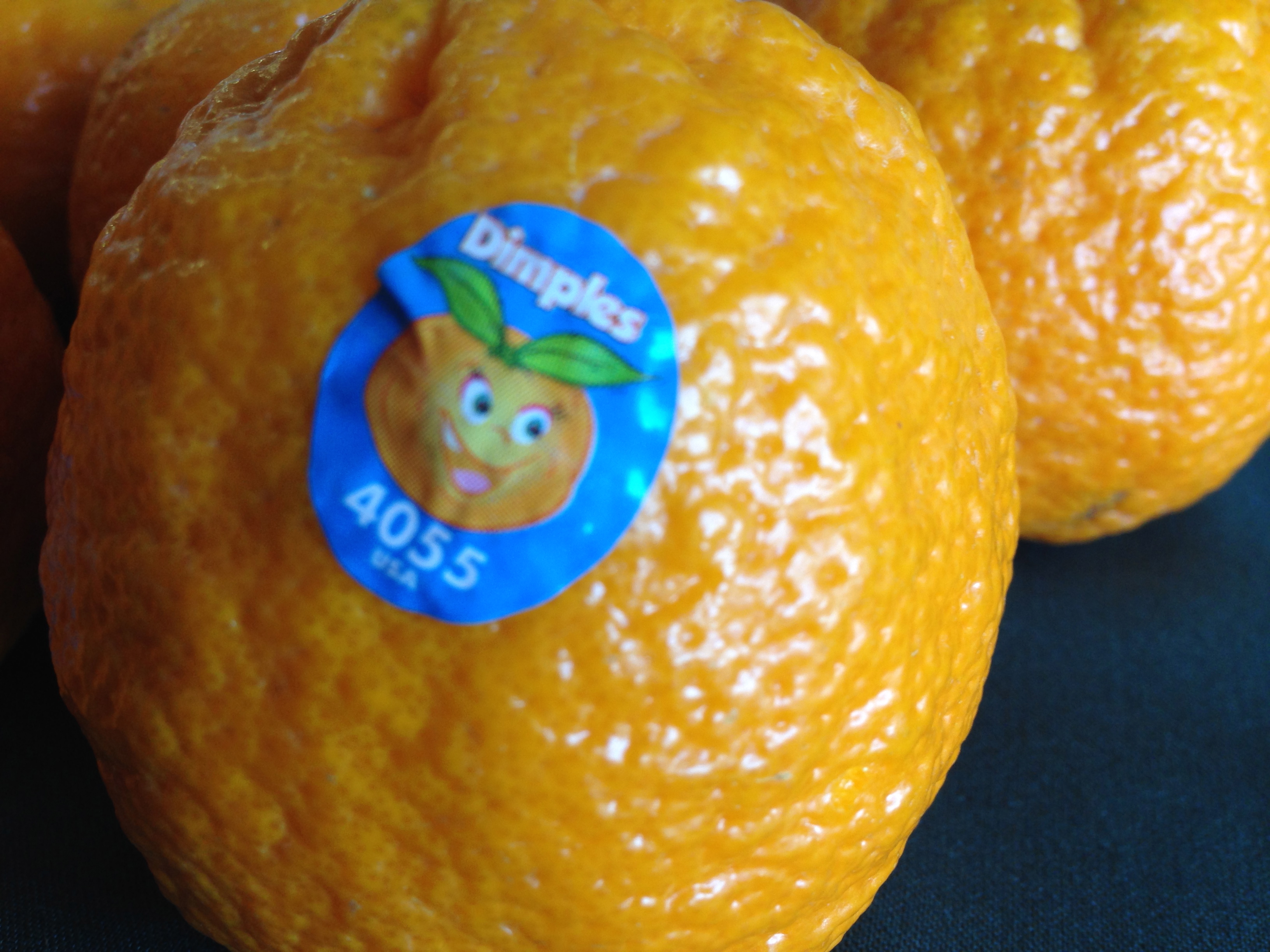 A Dimple is a sweet, easy-to-eat seedless Mandarin orange that is nutritious and delicious. With an easy to peel flesh (the whole orange can be peeled in one piece, a Dimple is a hybrid (the “gold nugget”) of the Mandarin variety with a bright orange bumpy “dimpled” rind which is how the fruit got its name.
