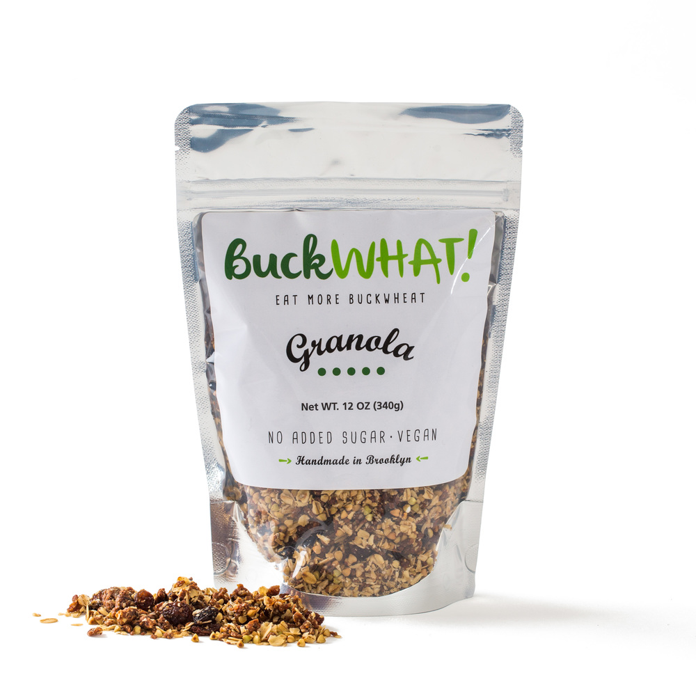 In Brooklyn New York, a small food company named BuckWHAT Foods (Buckwheat without the “e” to show people that buckwheat does not belong to the wheat family) owned by a sister-brother team who were born in Kiev and immigrated to the United States as children, makes a very different type of granola where the emphasis is on buckwheat. With no added sugar or sweeteners and no added oil, BuckWHAT Granola is as notable for what it doesn’t have as what it does have.