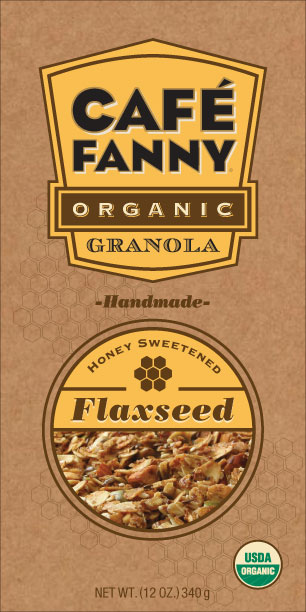 The Original flavor of Café Fanny Organic Granola is made with eight organic ingredients: thick-rolled oats, whole wheat flour, honey, sunflower oil, almonds, sesame seeds, sunflower seeds, and raisins. Crunchy and flavorful, Café Fanny Organic Granola is not too sweet because there is no added sugar. Instead, honey is the sweetener of choice.