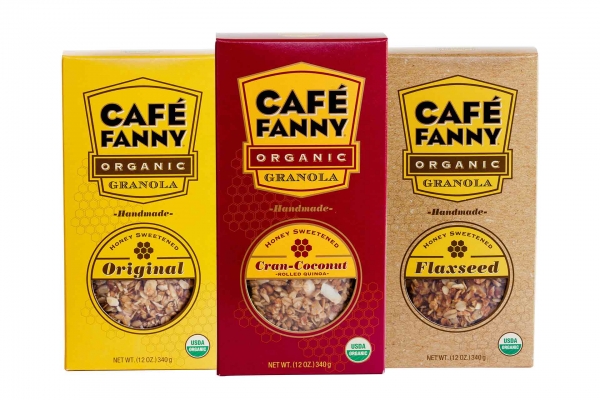 Café Fanny Organic Granola can be purchased on-line at www.cafefannygranola.com. Each 12 ounce box is $8 with a minimum purchase of 3 boxes, plus shipping. The granola can also be purchased at Dean & DeLuca in New York City for $12, which is more expensive but there are no shipping charges.