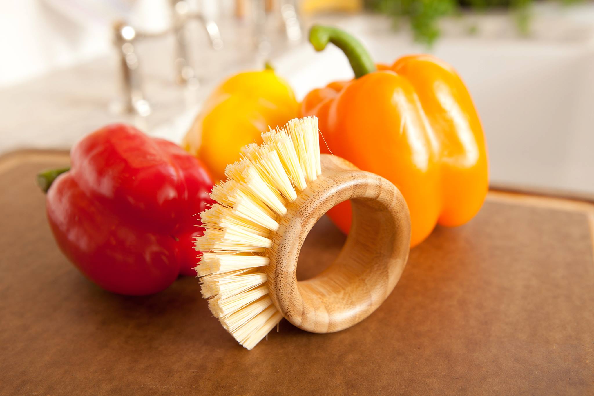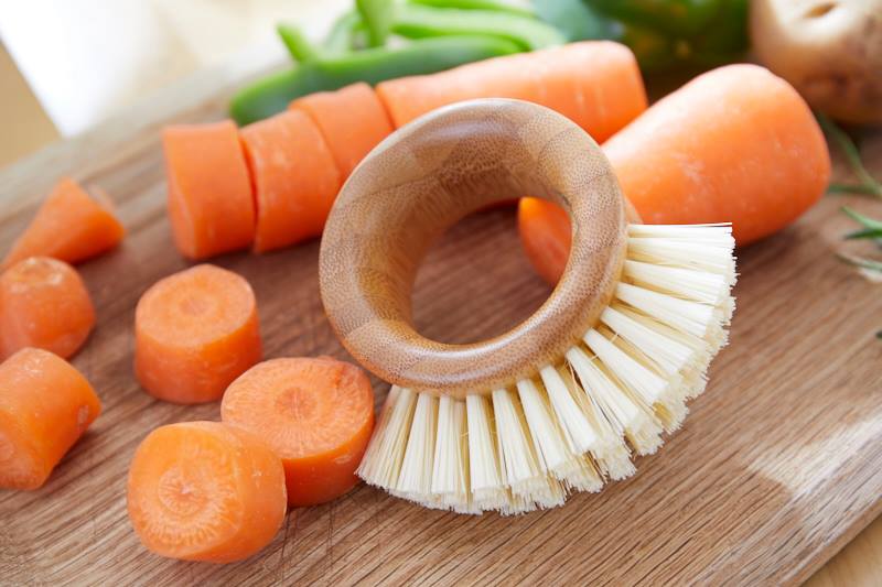 Although the company makes many products, The Ring™ Veggie Brush stands out. Made to clean all produce from apples to zucchini, The Ring™ Veggie Brush has a bamboo handle that lets you hold on and clean with ease. The bristles cover about 40% of the ring and are tough enough to clean dirt off potatoes and leeks but soft enough to clean the most fragile mushrooms.