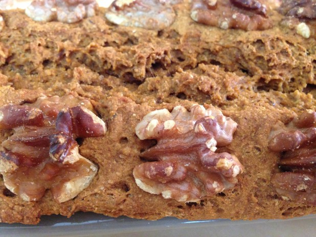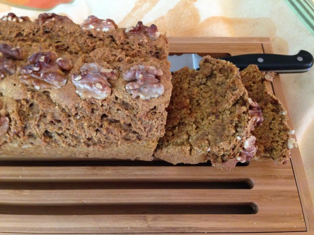 This bread is so easy to make: basically blend all the dry ingredients in one bowl and the wet ingredients in another. Mix them together and bake. That’s it. And, a final note on nuts. I prefer nuts on my bread because pecans or walnuts add a delicious crunch (and a nutritious boost) to the bread but some people prefer their quick breads without nuts so if you prefer no nuts, don’t add them.