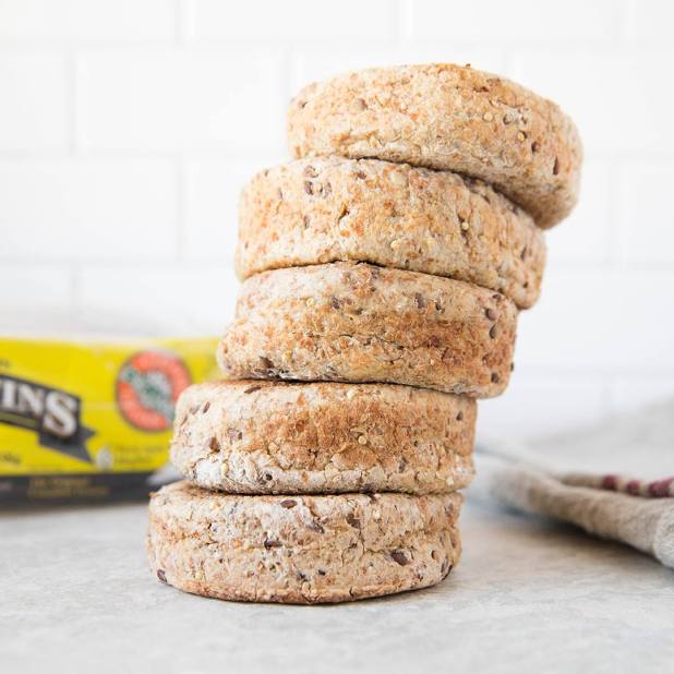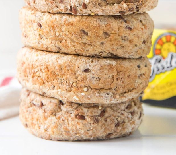 Whole grain english muffins are not only a healthier option (more fiber, vitamins, and minerals) but a more flavorful choice – especially when the muffin is made without sugar, oil, dairy products, and ingredients hard to pronounce?