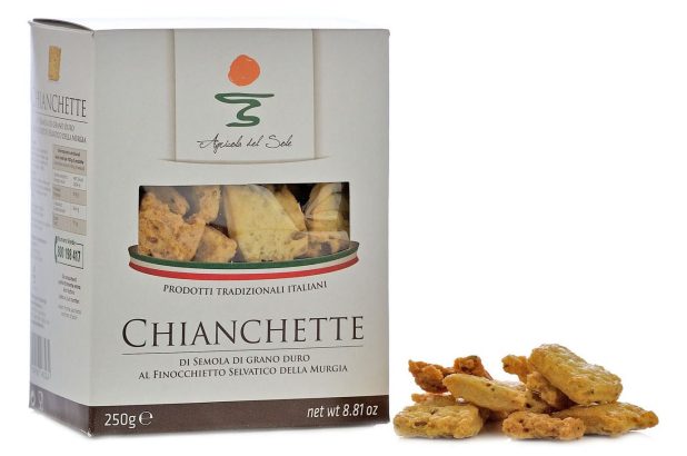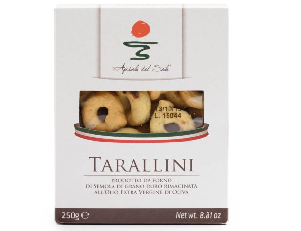 Agricola del Sole is an Italian company based in La Murgia, an agriculturally diverse territory in the Puglia (southeast) region of Italy (known as Apulia) that specializes in making traditional Italian foods including Tarallini, Racioppi, and Chianchette – small crackers made with durum wheat semolina, olive oil, white wine, and salt.
