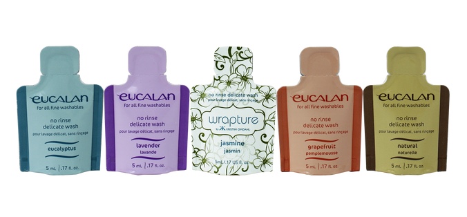 After several bad experiences with dry cleaners, I started hand washing clothes that recommended dry cleaning but I wasn’t always happy with how the clothes turned out. I never gave much thought to laundry detergents until I visited a yarn shop, saw a shelf lined with bottles of Eucalan and heard a young man (all of 24 years old) say he uses Eucalan to clean his sweaters. Perplexed, I silently considered how a 24-year old guy could know about a speciality laundry product and I didn’t? Turns out his mother has been using Eucalan for years (this renewed my faith that maybe children do listen, watch, and learn from their parents).