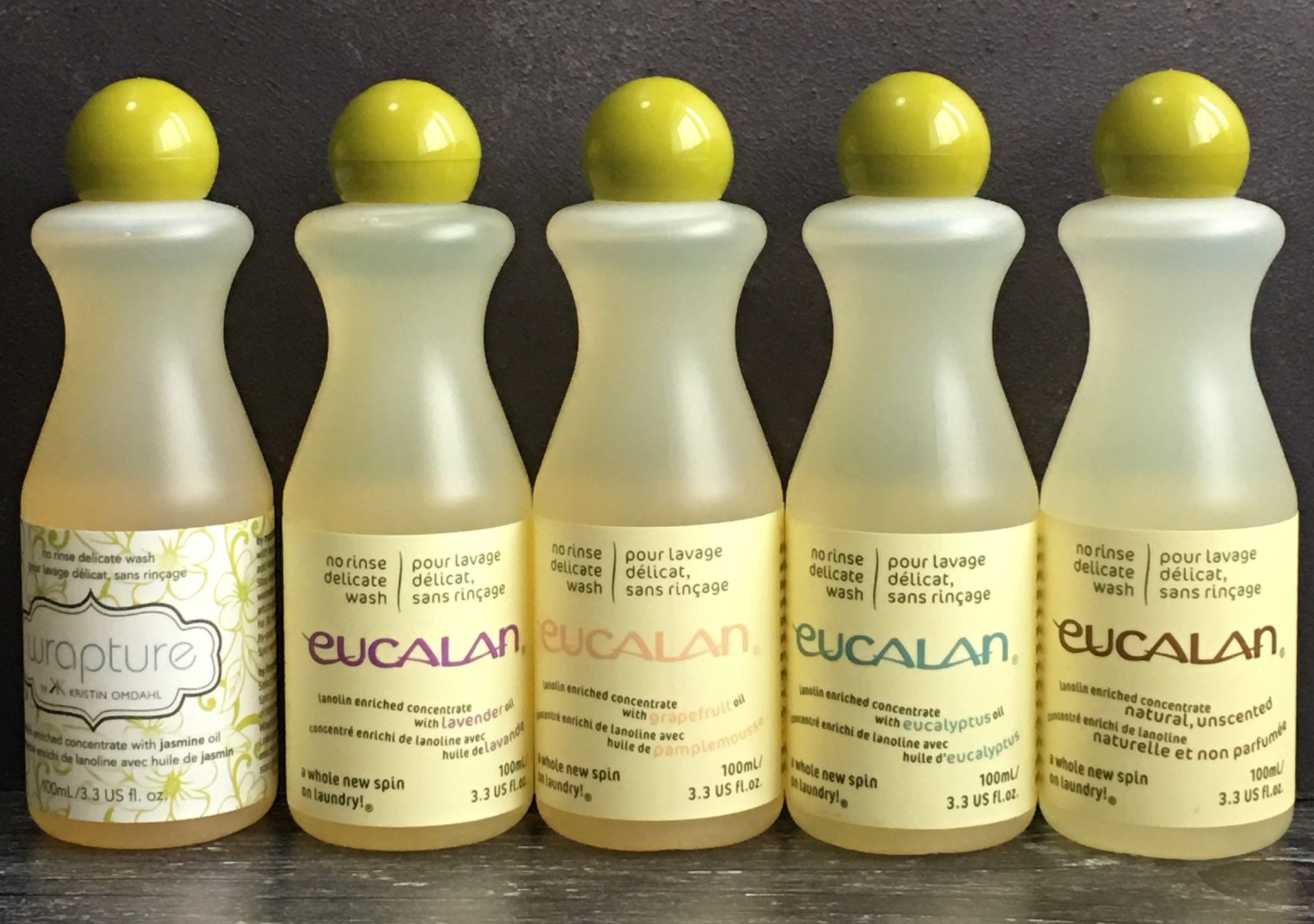 Non-toxic, biodegradable, free of optical brighteners, phosphates, synthetic fragrance and dye, Eucalan is pH neutral and is packaged in an easy to recycle, dye free HDPE plastic bottle. Available in natural and 4 scents (eucalyptus, lavender, grapefruit, and jasmine), Eucalan is scented with only quality essential oils. The lanolin acts as a natural conditioner, keeping fibers supple and reducing static.
