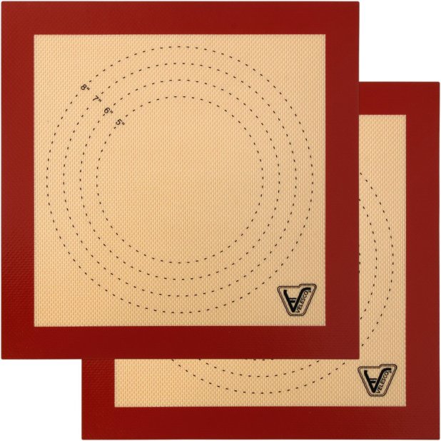 Third, invest in a silicone baking mat (preferably with a circular imprint to guide your rolling) and a roll of parchment paper. Both are widely available on-line and in kitchen specialty shops. Place the dough ball in the center of a lightly floured silicone mat, sprinkle a bit of flour over the dough and then cover with a piece of parchment paper. Roll the dough out gently on top of the parchment paper. Peel away the parchment paper and then gently fold the dough crust into a pie plate.