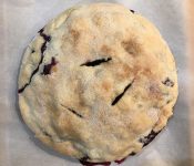 Sixth, choose the most flavorful fruit available. Taste the fruit before using. This will help you decide how much sweetener to add. For fresh blueberries during the summer, 4 tablespoons of sugar is enough sweetener but for winter blueberries that are often more tart than sweet, increase the sugar to 6-8 tablespoons. (Full disclosure: I don’t like a very sweet pie so if you like your pie really sweet, add more sugar).