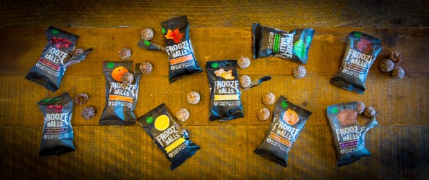 Frooze Balls come in 6 flavors – all of which are made with dates, cashew nuts (or peanuts), sunflower seeds, coconut, Himalayan salt, and natural flavors. From that base of wholesomeness, natural ingredients (i.e. maple syrup, cherries, raw cacao, raisins, etc) are added to make each Frooze Ball flavor unique and delicious: