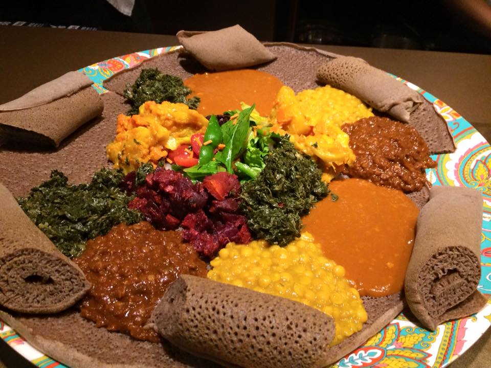 Addissae (named after the owner’s mother) – with the Lion King-like logo – has an almost cult-like following because it’s the only place in Asheville to get really good Ethiopian food. The classic Messob platter is here – the injera bread (the teff and brown rice fermented bread that tastes like a spongy crepe) piled with a selection of vegetable side dishes.