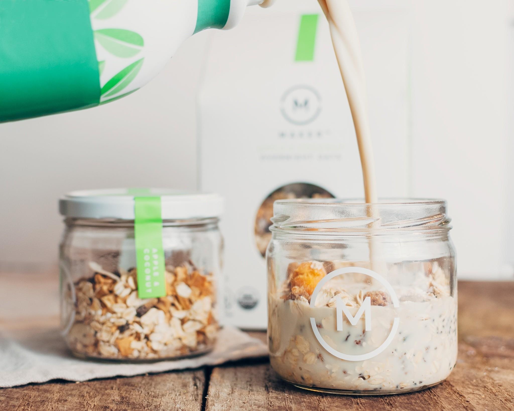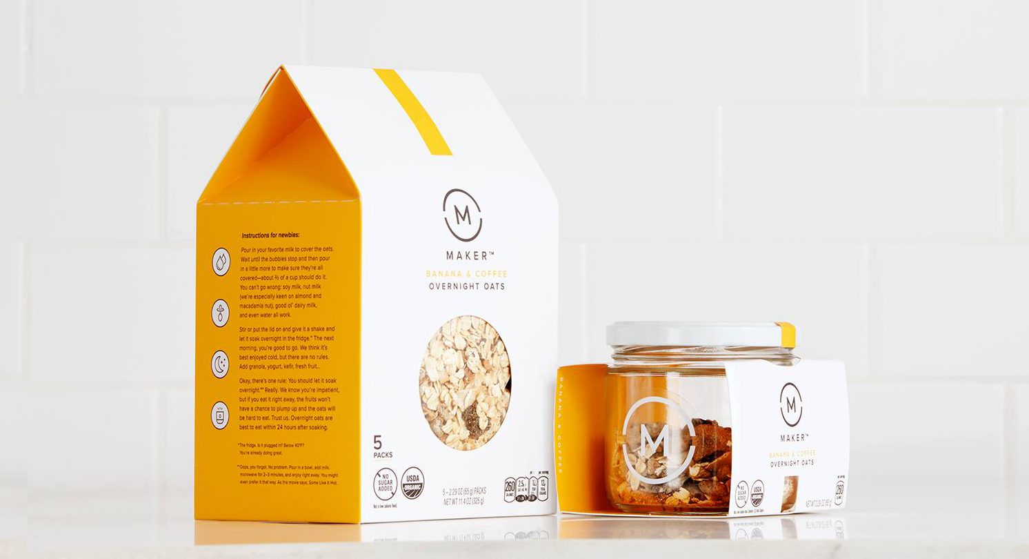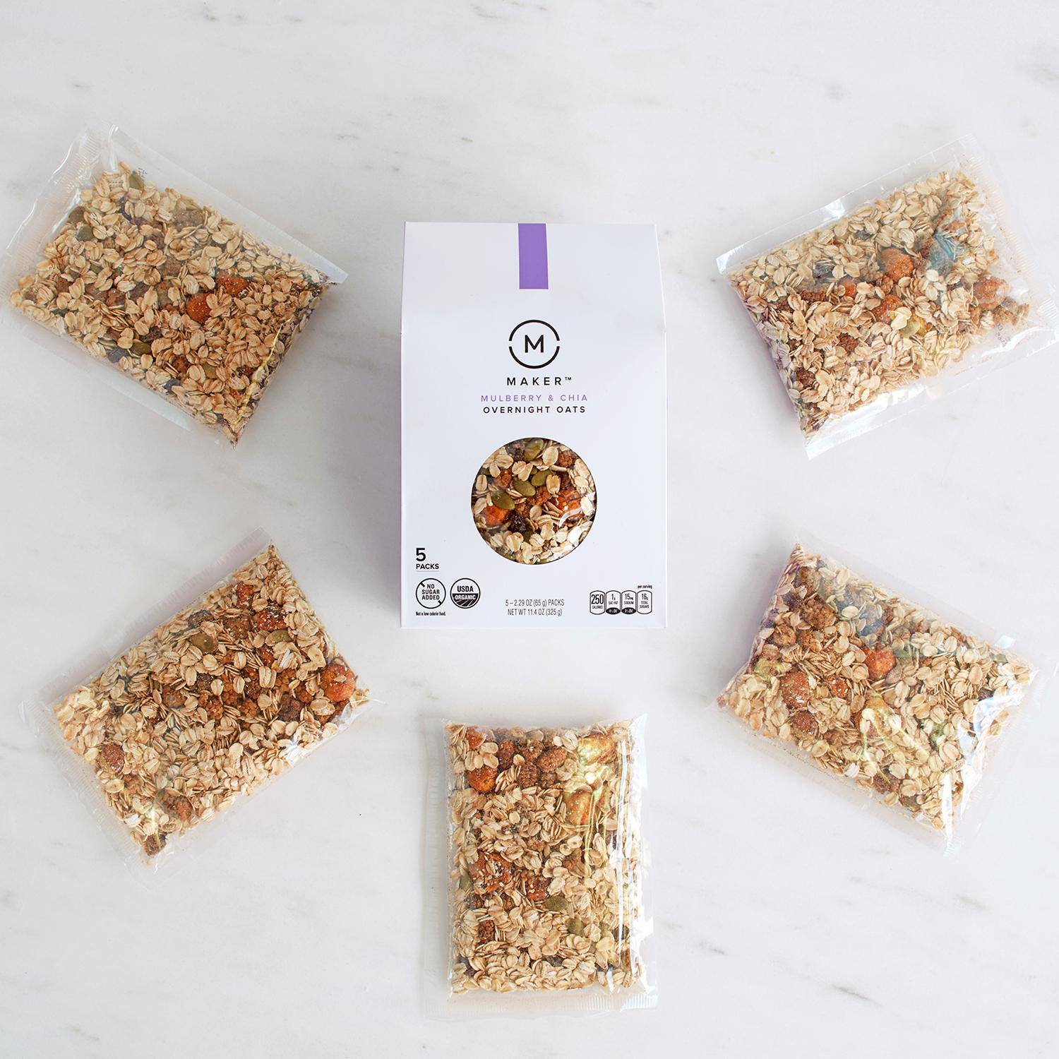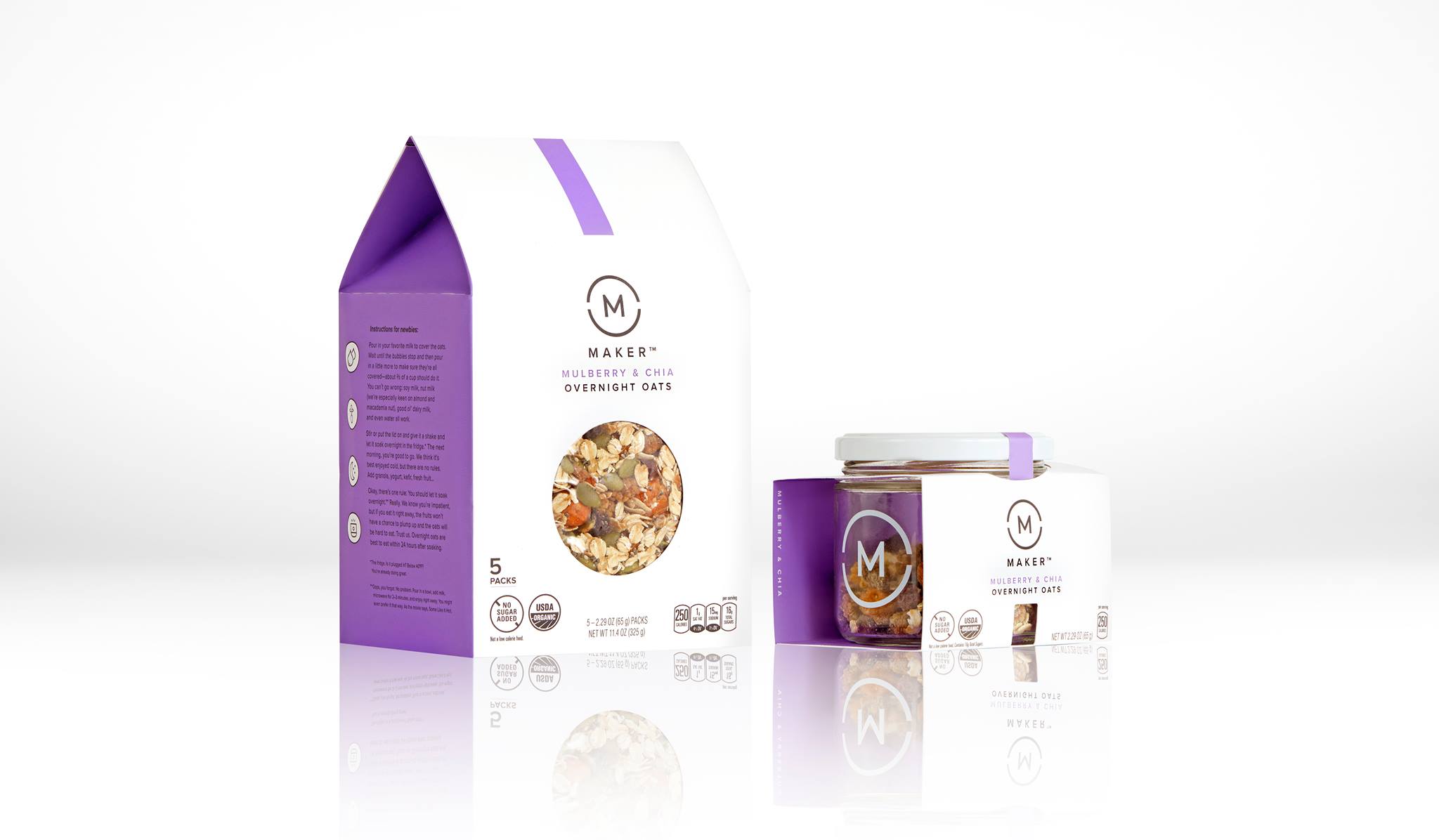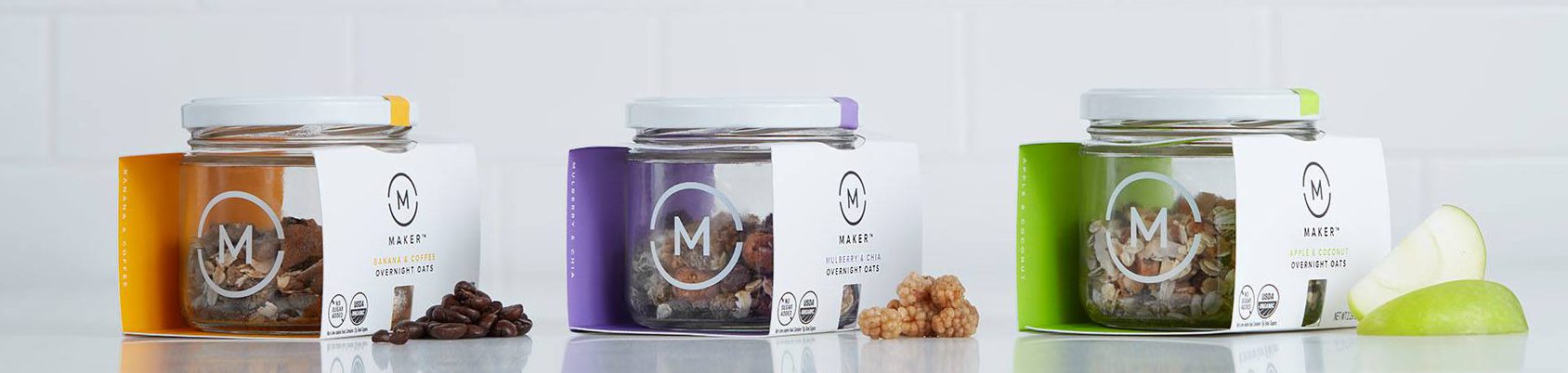 Maker™ Oats makes three types of overnight oats in individual pouches and glass jars: