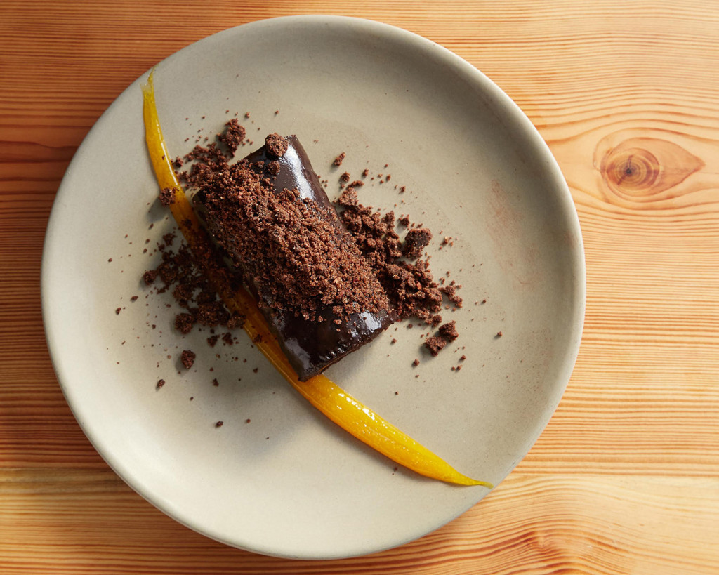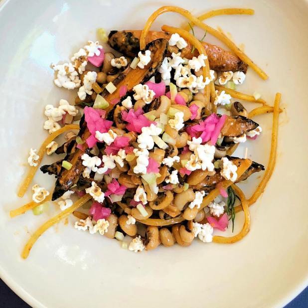 Dishes are divided into “lighter” or “bolder” and are meant to be shared so order several for the table (many people find 3-4 dishes plus dessert a perfect meal).  The Nix version (vegan) of the Cesear Salad with avocado, strawberries, fennel, and pink peppercorns is crispy and creamy with a slightly spicy but sweet flavor. But, the shredded kale salad tossed with almonds and rye berries in a light curry dressing can convince anyone that kale is truly king.  And, the roasted carrots on a bed of black-eyed peas with a barbecue dressing and tiny pieces of sorghum popped corn is in all its simplicity (that’s a joke), just delicious.