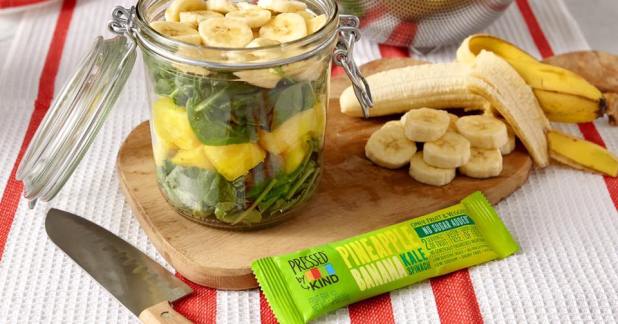 Pineapple Banana Kale Spinach: Only fruit (pineapple, bananas, and apples) and veggies (kale and spinach) go into making these fruit and veggie bars.