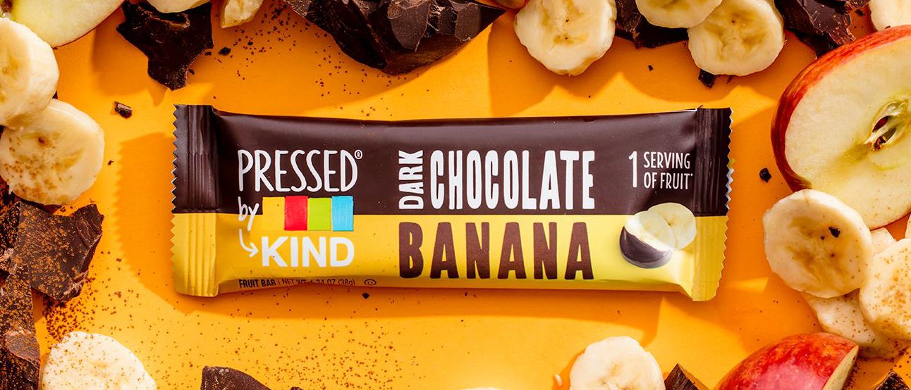Dark Chocolate Banana: When I was young, I would often peel a banana and put a stick in the center before dipping the banana on a stick in melted chocolate. When the chocolate dripping started to slow, I placed the chocolate covered banana on a stick on a piece of wax paper in the freezer. I now put Pressed By KIND® Dark Chocolate Banana Bars in the freezer when I want a frozen chocolate covered banana treat.