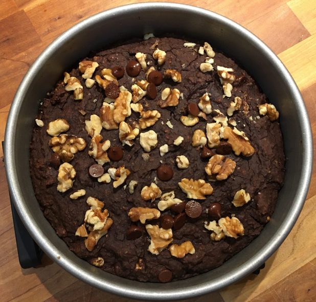 The following recipe is a variation of a black bean brownie recipe by Chocolate Covered Katie. Katie’s recipe is fantastic (click here for a link to it) but I wanted a deeper chocolate flavor (more cocoa) and the benefit of whole grain rolled oats (instead of quick oats). I also prefer walnut pieces in my brownies but nuts are optional as purists usually prefer brownies without nuts.
