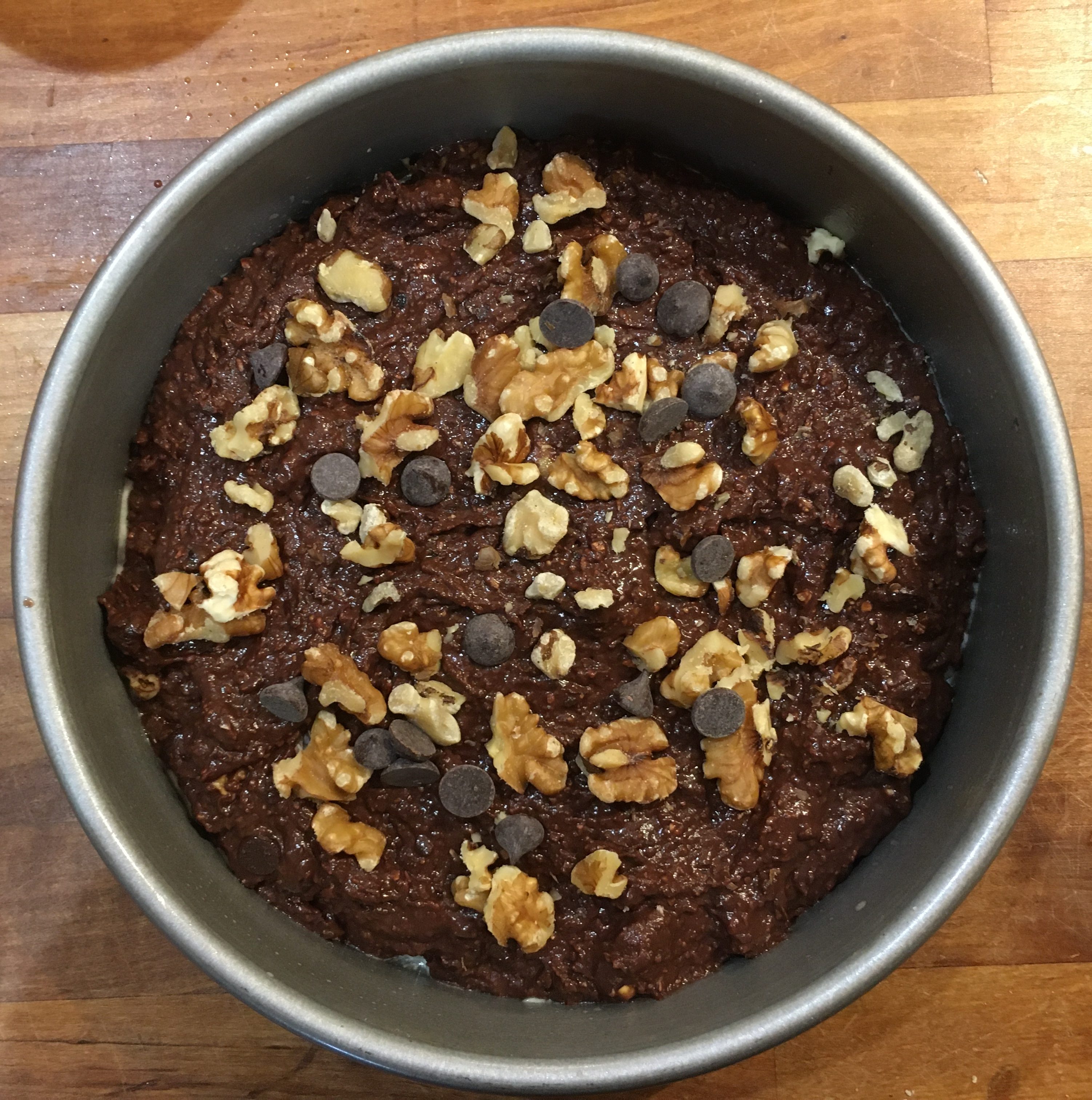 Stir in the chocolate chips and walnuts, if using. As an alternative, consider blending in 1/4 cup chocolate chips and 1/4 cup walnuts into the batter and then sprinkle 1/4 cup of walnuts and a few chocolate chips on the top.