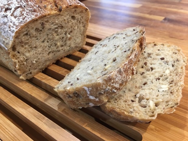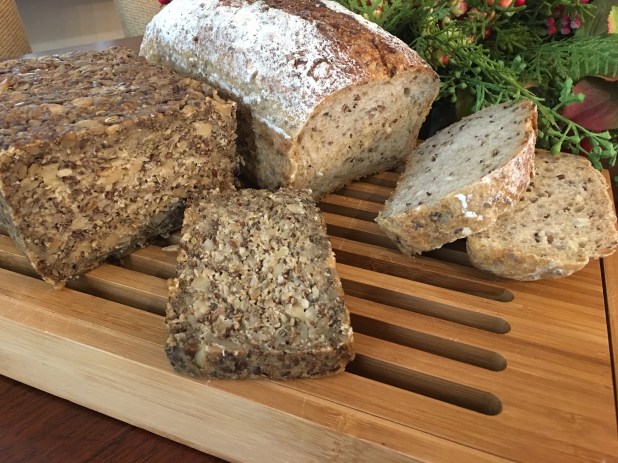 On my third visit, I bought loaves of Porridge Pan Loaf bread and also Squirrel Bread, a wheat-less, vegan loaf of bread made with oats and psyllium husks, laden with seeds and almonds. Heavy, moist and crunchy, this bread is dense with flavor and texture. I since learned that a Squirrel Bread is usually loaded with nuts and seeds (makes sense, right?) and is worthy of a cheek stuffing (I definitely agree). This one hits the mark. Delicious plain or toasted, Squirrel Bread is a super nutritious scrumptious bread worthy of your plate.