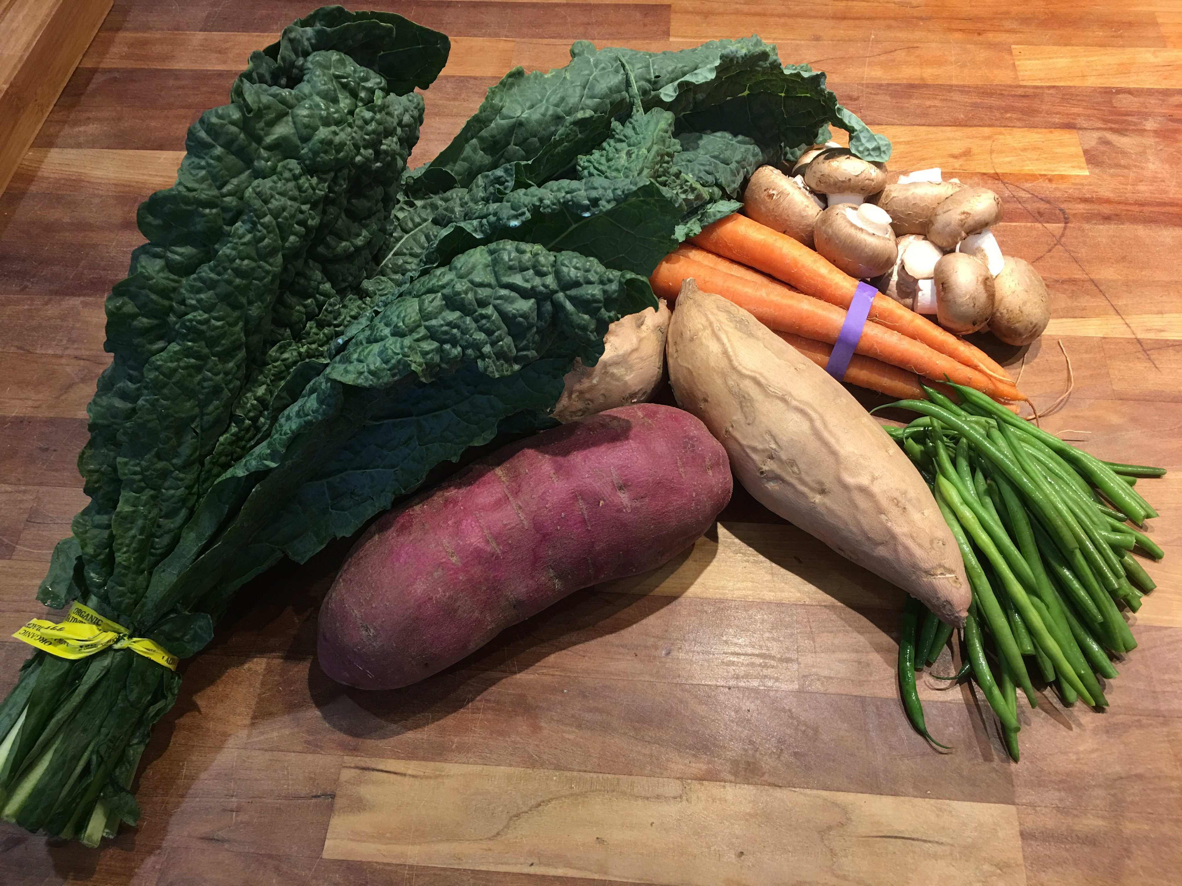 Roasted Sweet Potatoes, Beans, and Veggies is a catch-all name for an entree that has it all: potatoes, beans, greens, carrots, and mushrooms. Although the star of the show is the sweet potato (three different kinds), the other vegetables and beans add a lot of flavor (and nutrients) to the dish.