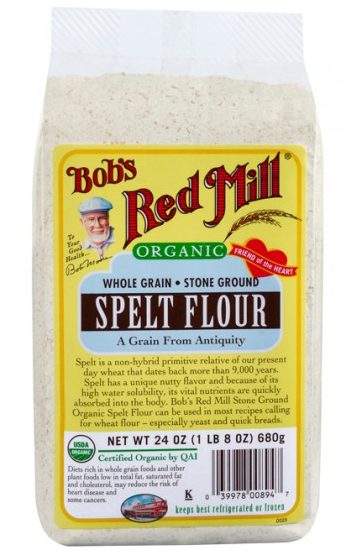 Bob’s Whole Grain Spelt Flour also works beautifully in this recipe and is available at most grocery stores or on-line at most retailers. Again, the fiber – 12 grams per cup – is nearly the same as whole wheat flour (13 grams per cup).