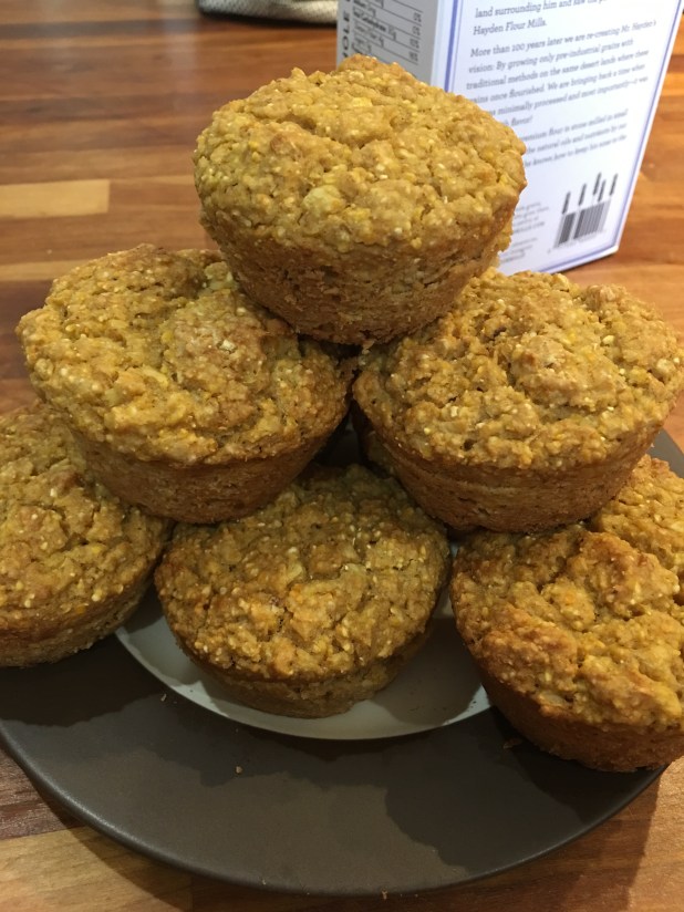 Don’t underestimate the power of a really good whole grain flour; the type of flour used in this recipe really makes a difference. Hayden Flour Mills all purpose flour is made with stone ground White Sonora Wheat and Hard Red Spring Wheat flour (which has the same amount of fiber per cup – 12 grams – as most whole wheat flours but makes a lighter muffin). Available at Fresh Market or on-line at www.haydenflourmills.com).