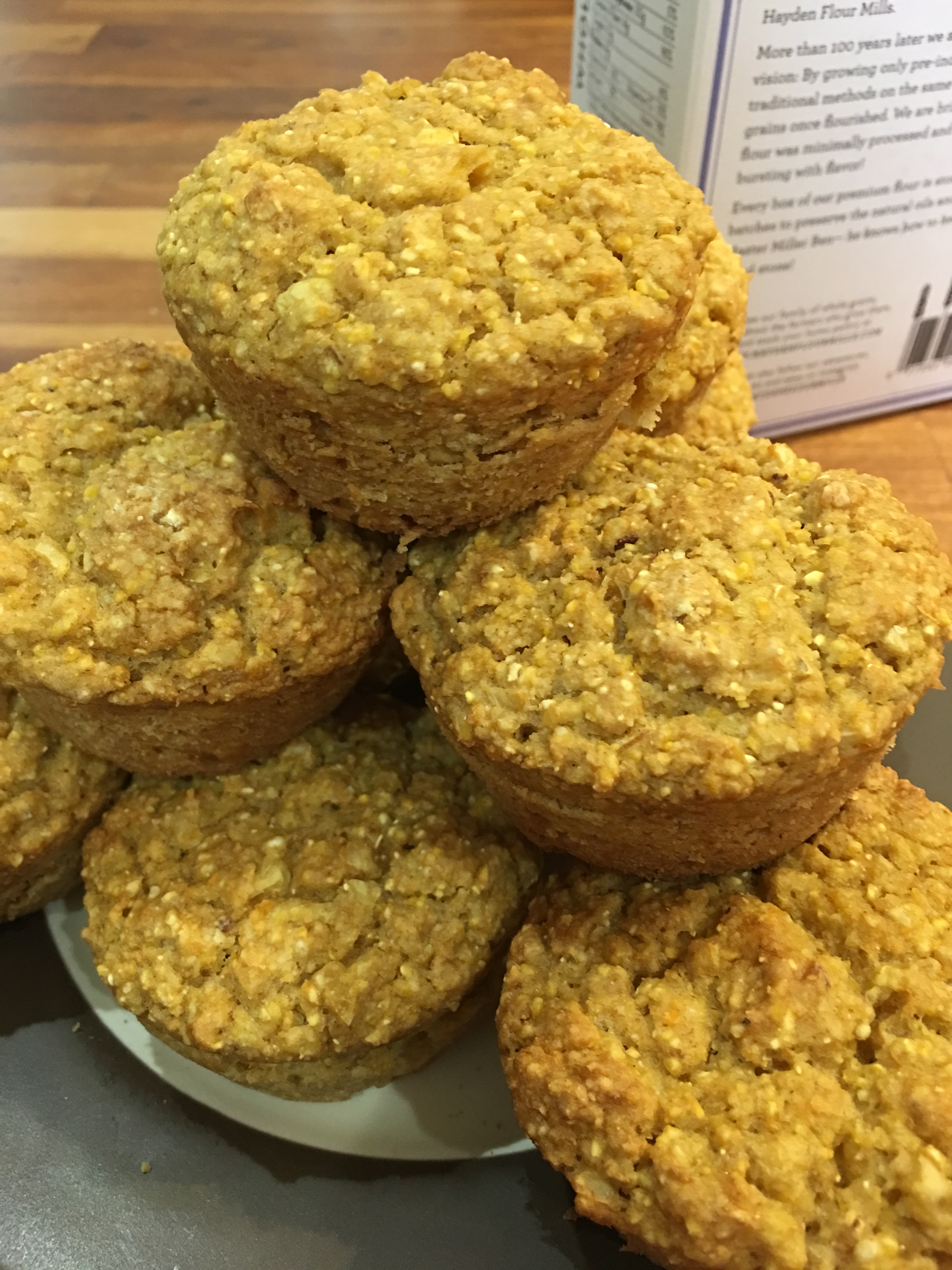 Don’t underestimate the power of a really good whole grain flour; the type of flour used in this recipe really makes a difference. Hayden Flour Mills all purpose flour is made with stone ground White Sonora Wheat and Hard Red Spring Wheat flour (which has the same amount of fiber per cup – 12 grams – as most whole wheat flours but makes a lighter muffin). Available at Fresh Market or on-line at www.haydenflourmills.com).