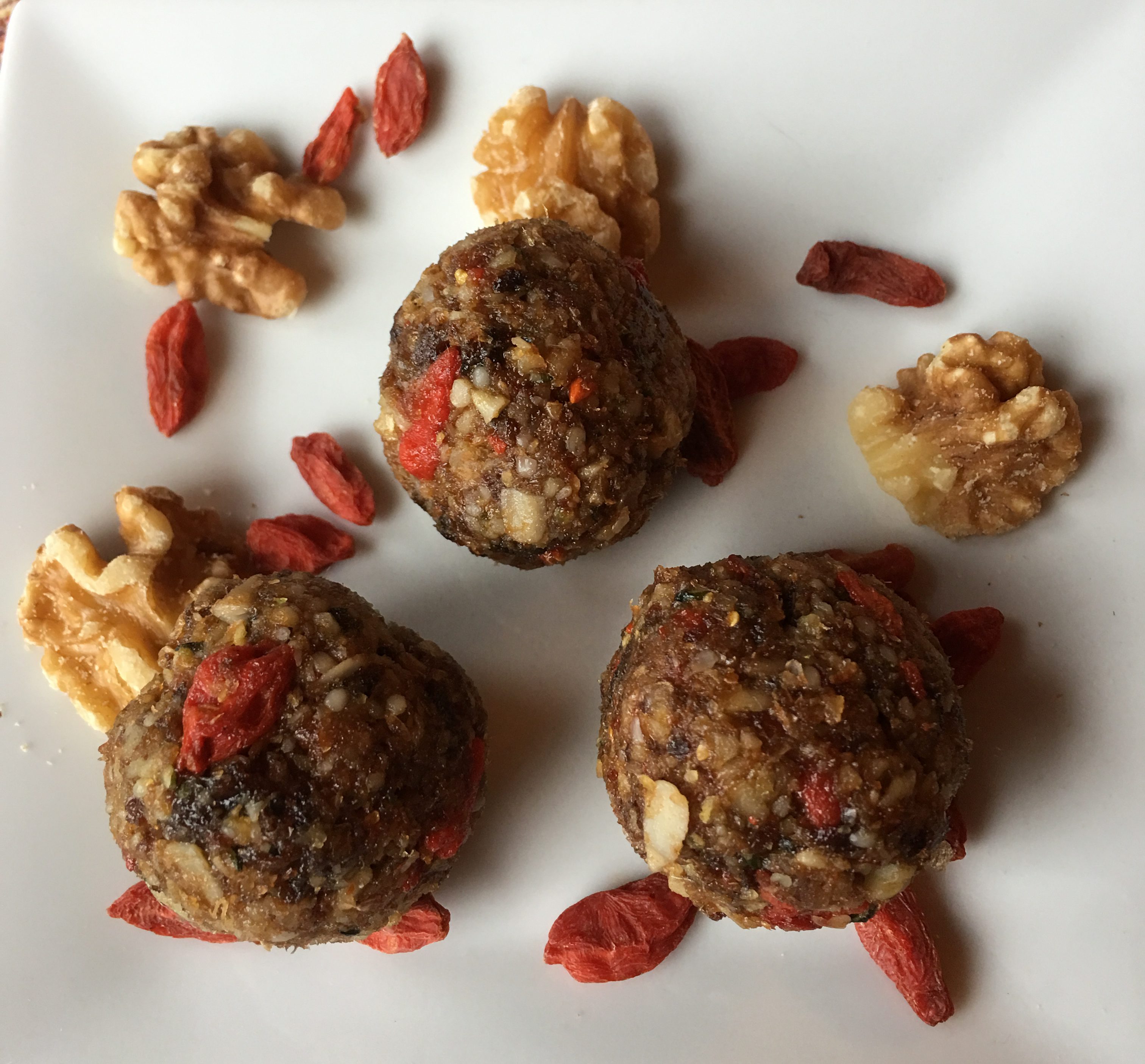 Inspired by the recipe for Superfood Breakfast Bites in the How Not To Die Cookbook, Powerballs are heavy on the dates, apricots, and walnuts but its the seeds, berries, hemp, and flaxseed along with the cinnamon that make these treats so special.
