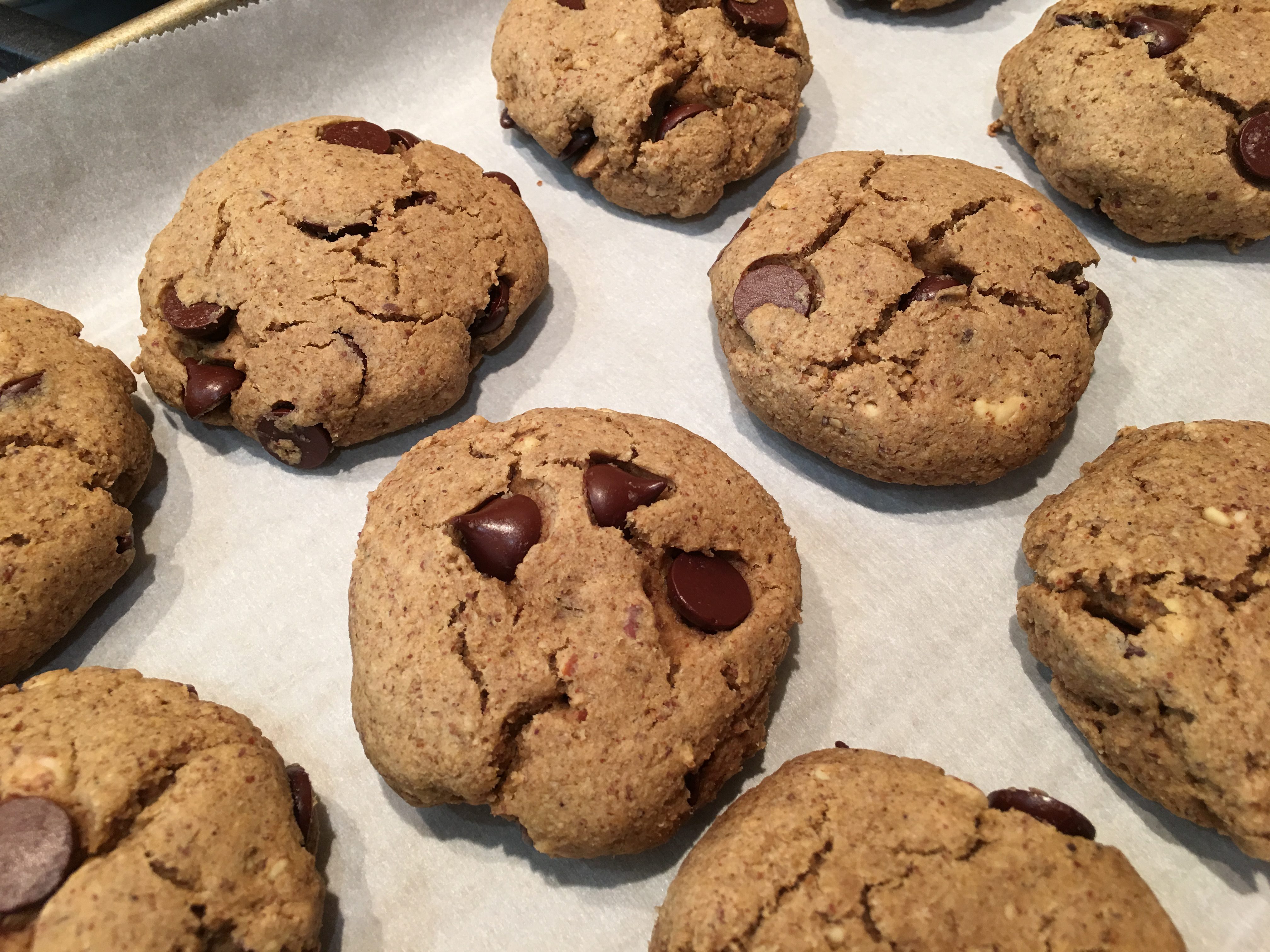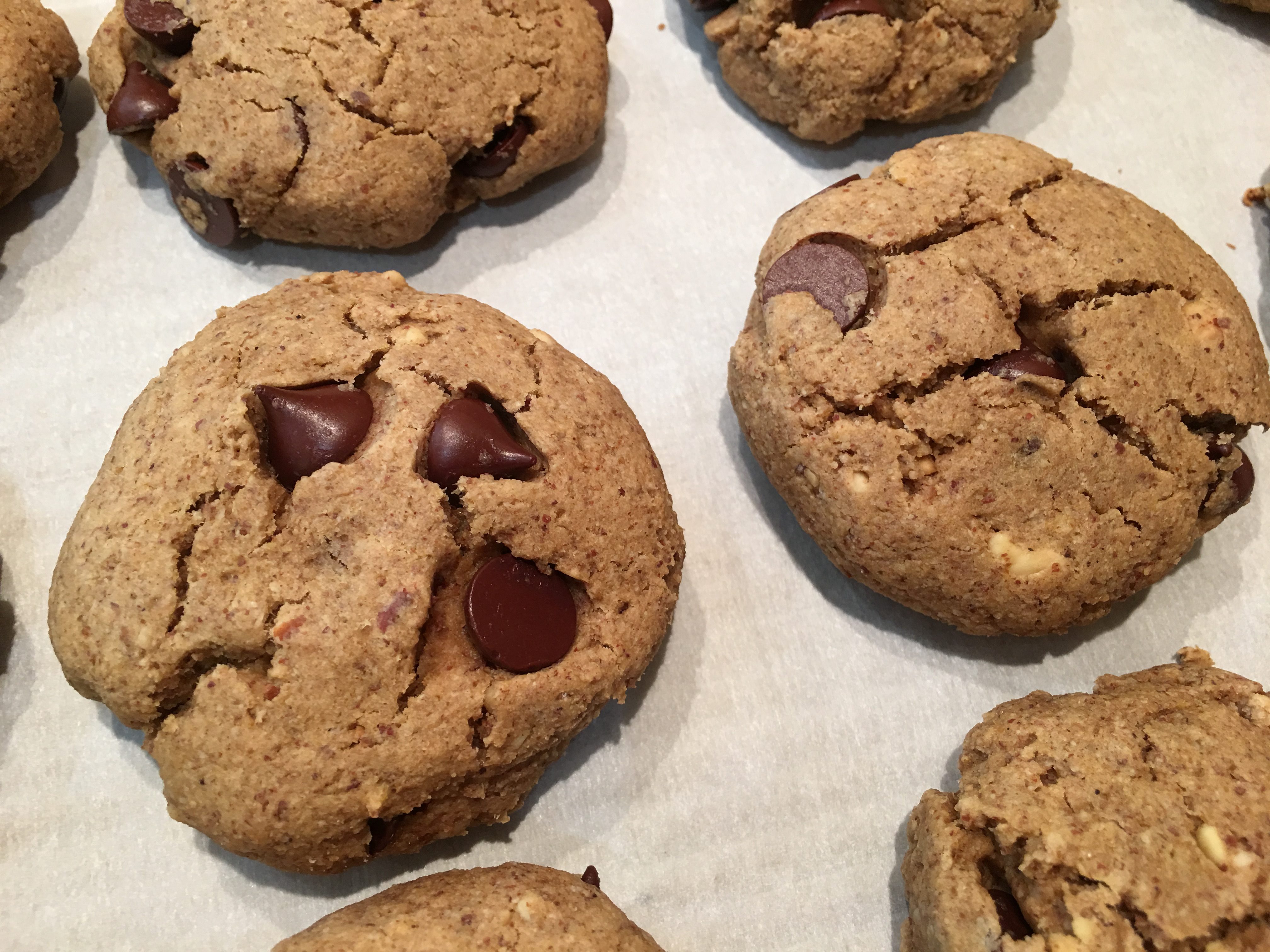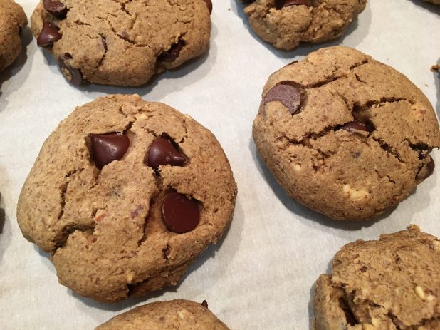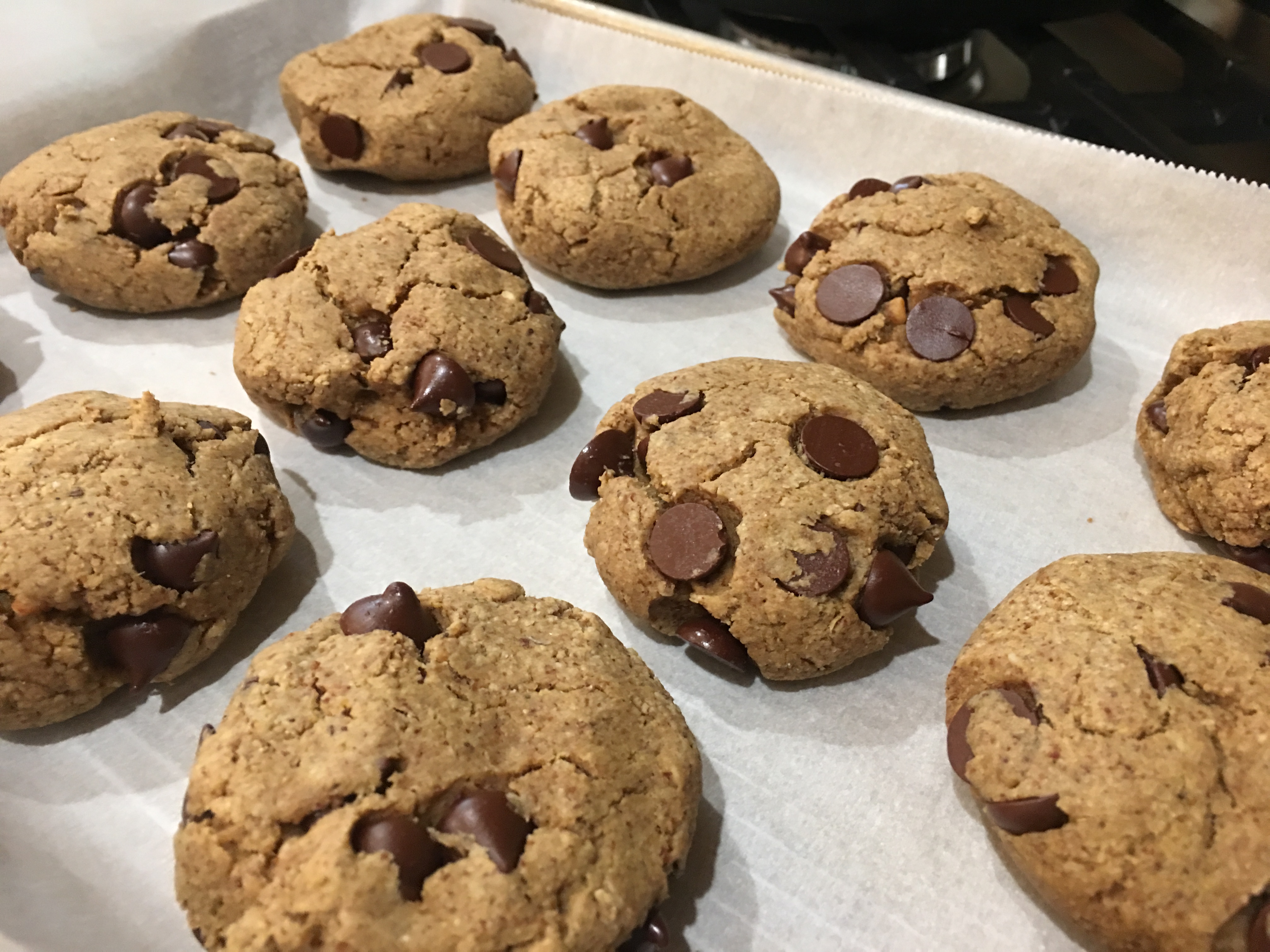 The secret to making a great chocolate chip cookie without butter and eggs is to use almond butter made with just almonds (no additives like sugar, honey, salt, emulsifiers, etc). The richness of almond butter replaces the butter and makes for a moist rich thick chocolate chip cookie.