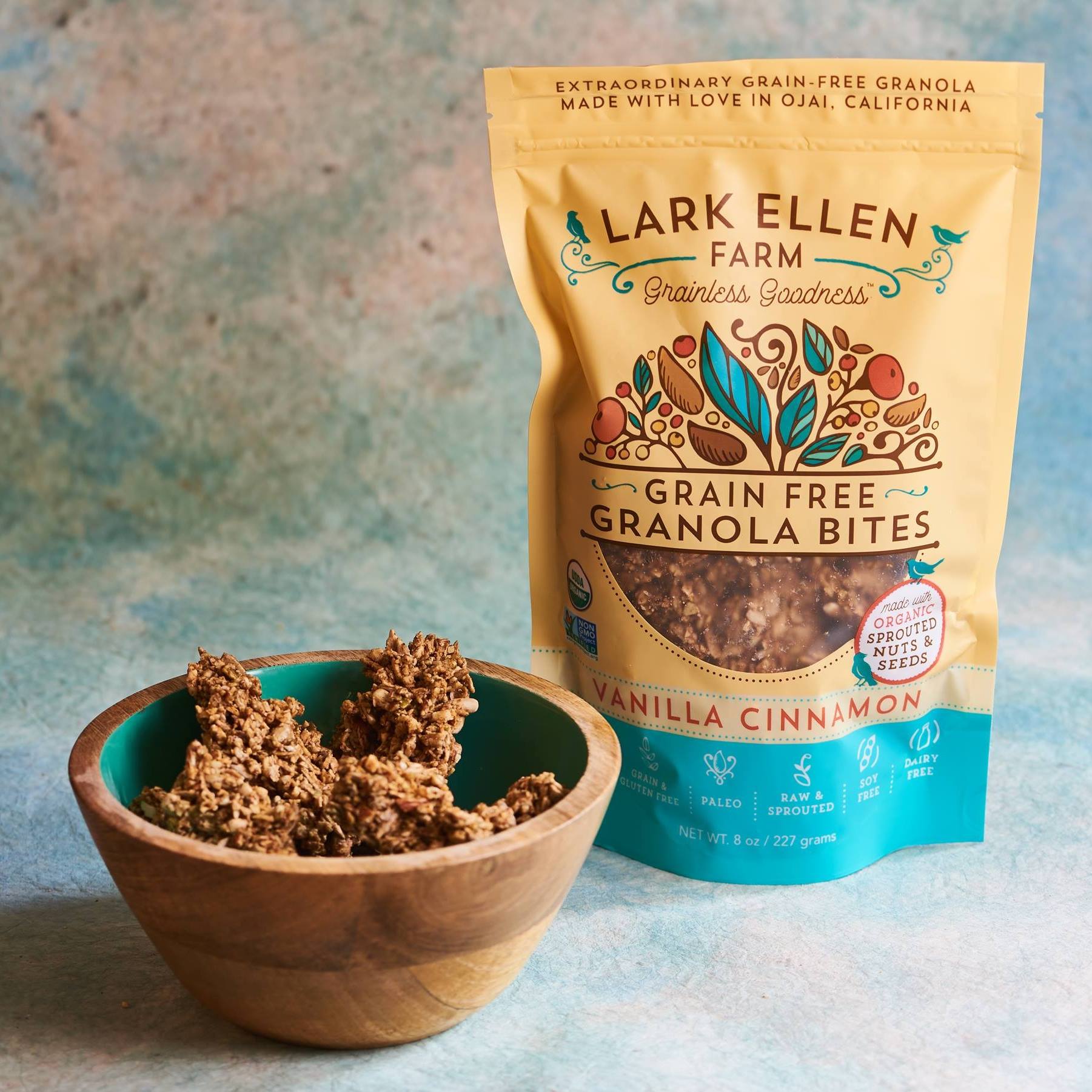 Lark Ellen Farms makes 6 different varieties of granola (although 5 of the flavors are called “granola bites” and one flavor is called a “cereal” with the differentiation made based on the size of the finished product in the bag. The bites are larger but easily crumble while the cereal contains smaller, looser pieces).