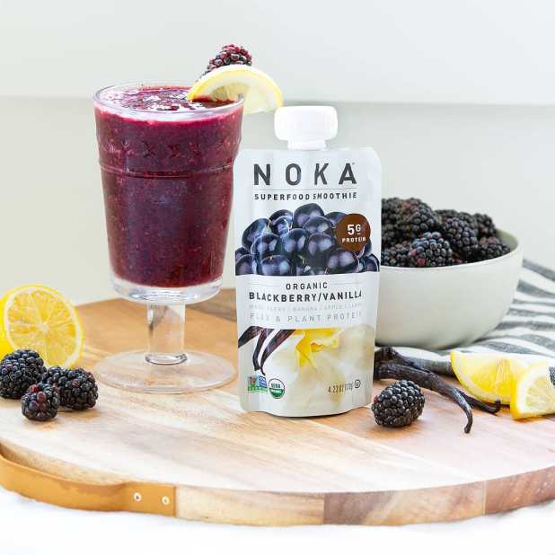 Noka® Superfood Smoothies come in 4.22 ounce single serving pouches (PBA free) with a screw-off top and built in mouth piece so the smoothies are easy to consume on the go. There is zero added sugar, no artificial colors or flavors, and no grains (gluten-free). Certified organic, Noka ® Superfood Smoothies have 5 grams of protein per pouch and are vegan.