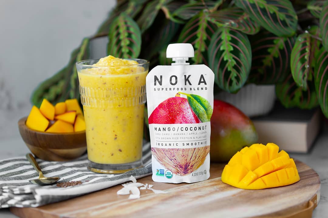 Noka® Superfood Smoothies come in 4.22 ounce single serving pouches (PBA free) with a screw-off top and built in mouth piece so the smoothies are easy to consume on the go. There is zero added sugar, no artificial colors or flavors, and no grains (gluten-free). Certified organic, Noka ® Superfood Smoothies have 5 grams of protein per pouch and are vegan.