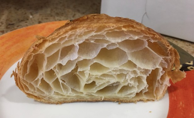 I tore a croissant apart and found what I was looking for: lots of flaky layers of pastry dough baked to perfection. But, the flavor is what won me over. I had almost forgotten how delicious a croissant could be.