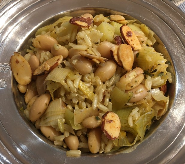Baked Basmati Rice with Leeks and White Beans (serves 8 as a side dish or 4 as a main course)
