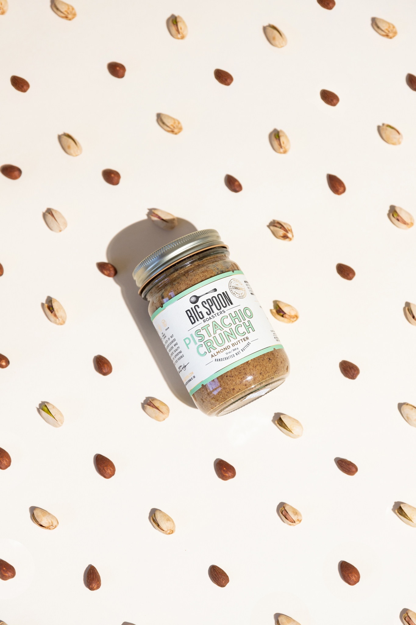 Consider the Pistachio Crunch Almond Butter made with heirloom mission almonds, pistachios, organic maple syrup, and Jacobsen sea salt ($14.95 for a 13-ounce jar)