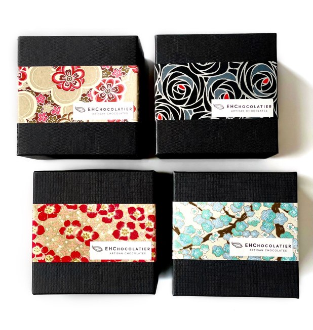 Available in bags, packets, and beautiful gift boxes. www.ehchocolatier.com