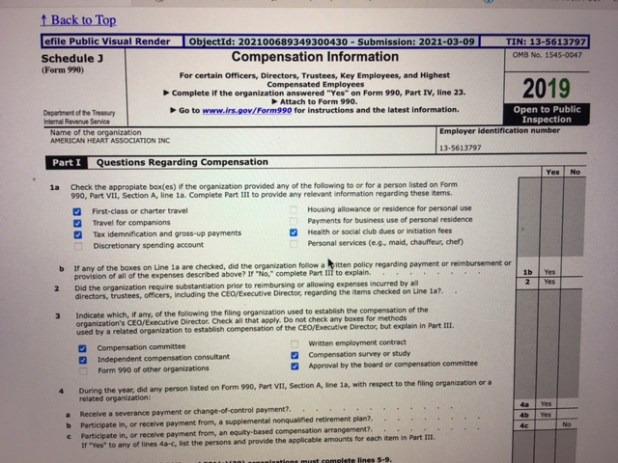 In summary, AHA faced an 18% decline in revenue from 2018-2020. Yet, the organization compensated the CEO $2.5 million in 2020 an $3.5 million in 2019. AHA also paid for first class travel, companion travel, and other perks. The 14 most highly compensated executives received nearly $10 million in compensation. But, what is more disturbing is that this tax-exempt non-profit raises nearly a billion dollars annually, has nearly a billion dollars in net assets and yet, heart disease remains the number one cause of death in the USA. Although AHA has been operating for nearly 100 years, maybe its time for the organization to re-direct their efforts to knock heart disease off the top killer in America.