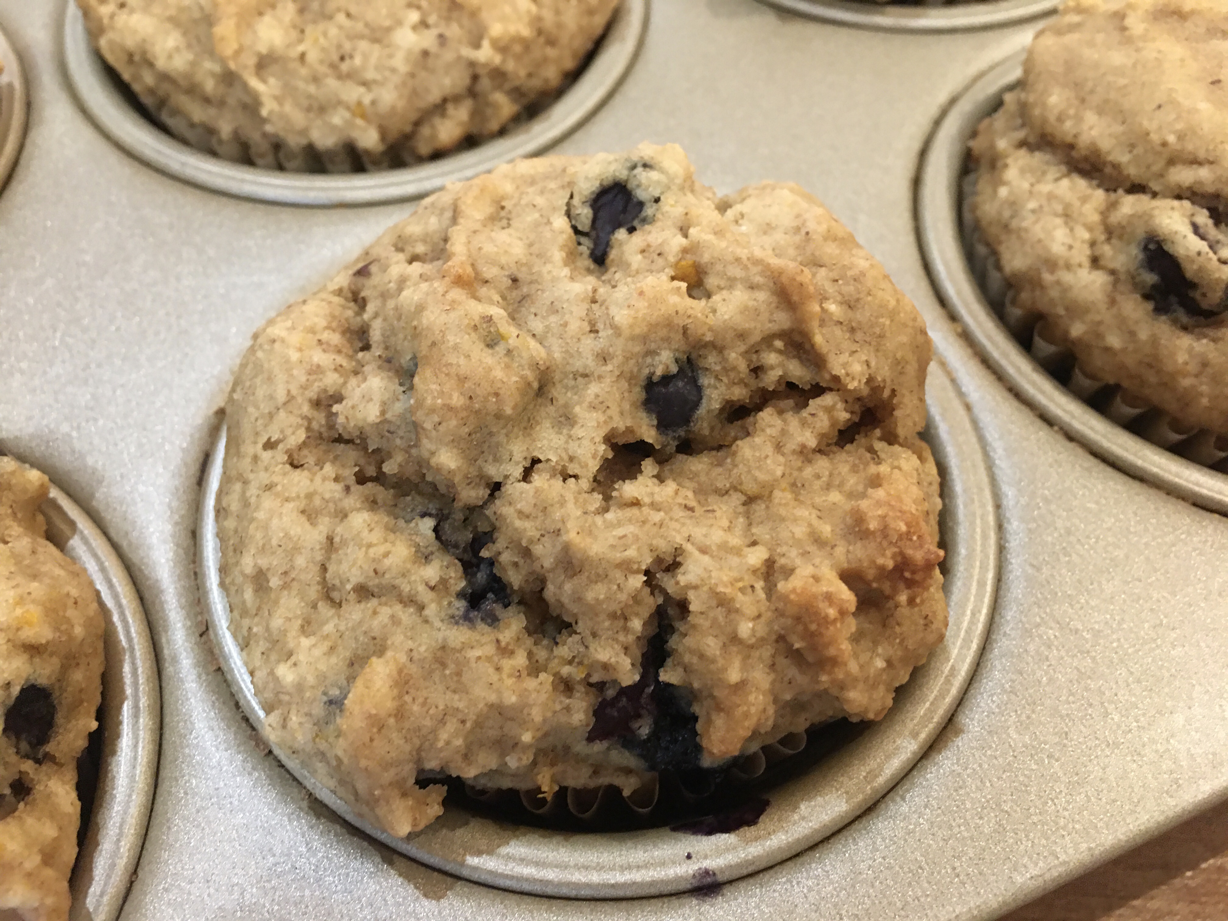 Most blueberry muffins are made with butter or oil, eggs, white flour, and refined sugar with the only “healthy” ingredient being the blueberries. But, what if I told you that a moist, high-rising great tasting blueberry muffin can be made without butter, oil, eggs, and refined sugar?