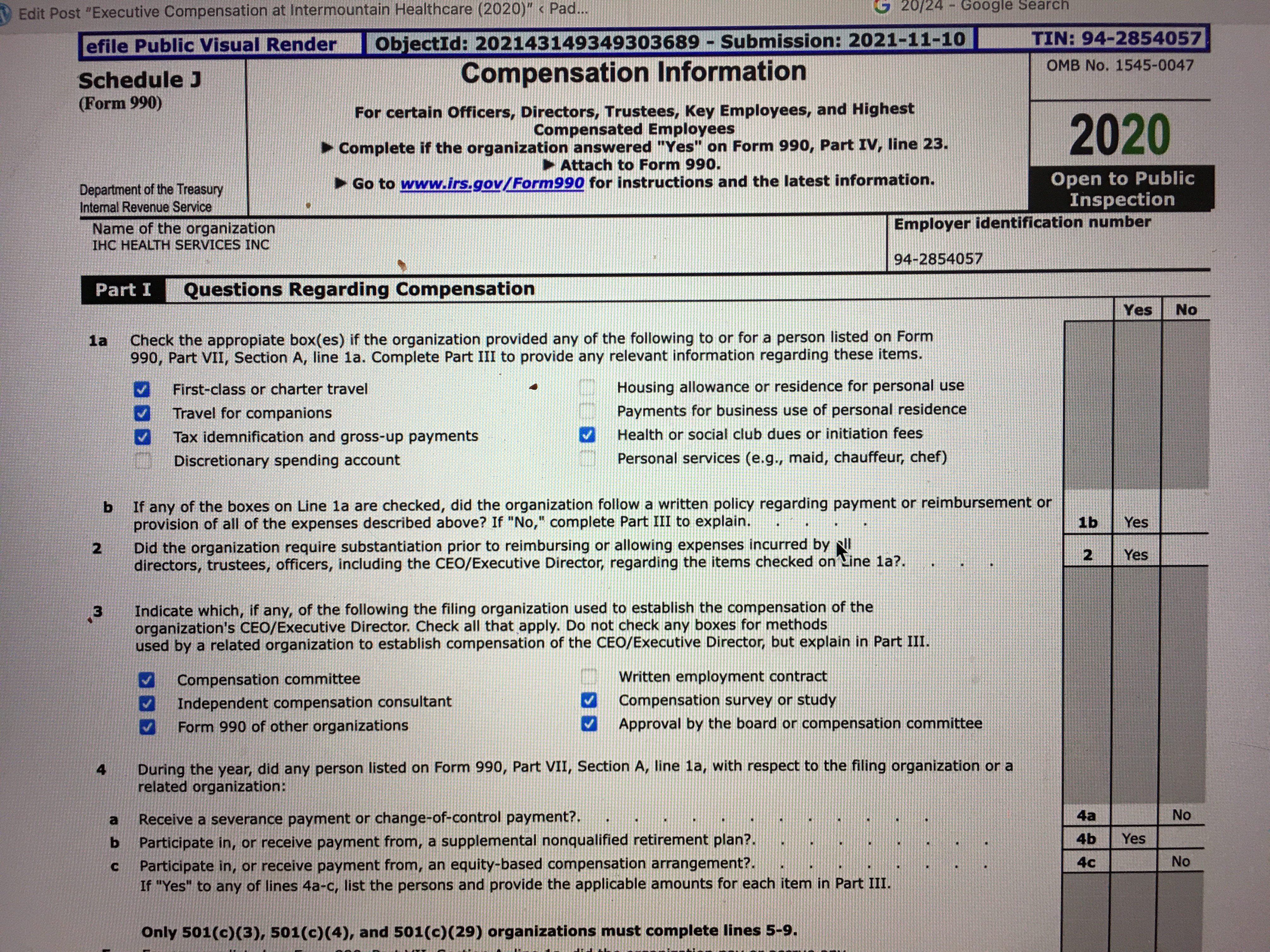 Executive Compensation at Intermountain Healthcare (2020)