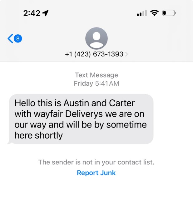 On Thursday, February 15th, I received a voice message from 800-856-6508 that said “This is Final Mile calling about your Wayfair delivery….” When I looked up the number, it was assigned to Linn Star Transfer out of Hazelwood, Missouri (the Better Business Bureau reports a 1.36 out of 5 rating based on 22 reviews) and that this business is not BBB accredited.