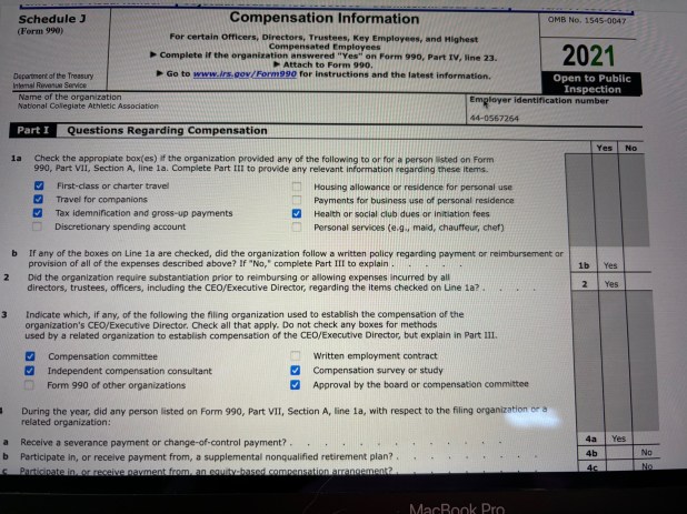 The NCAA paid for gift cards (amount not specified) for 15 of the officers, key employees and highly compensated employees.